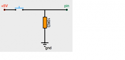 Lorsqu'on appuie sur le bouton poussoir, la va valeur lue par la broche d'entrée digitale “pin” passe de 0V à 5V.