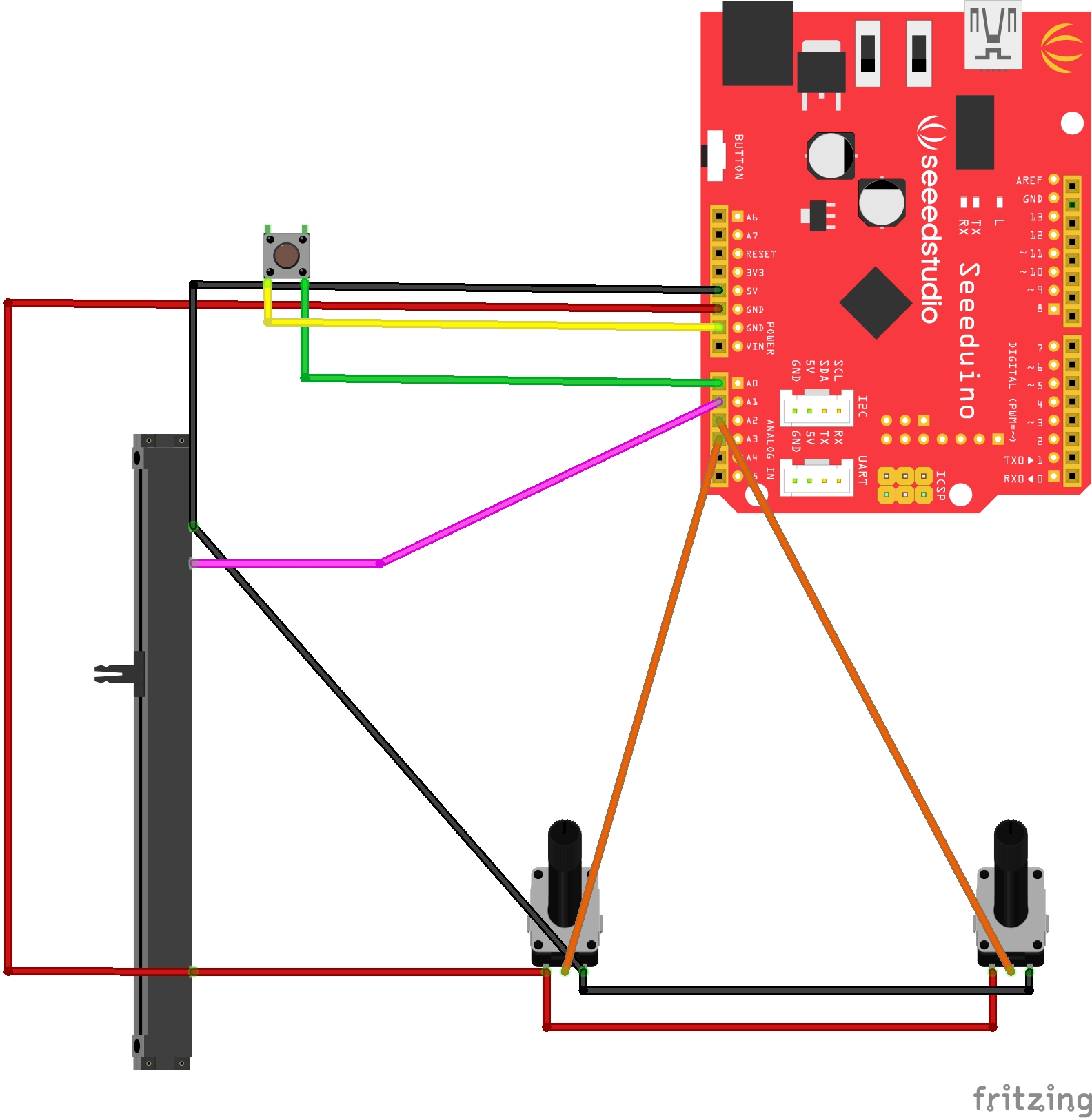 Pour que vienne la phase suivante, celle de la restitution. Une possibilité de reproduire l'objet visuel sur Processing avec 8 potentiomètres (6 pour la distorsion des angles et deux autres pour la couleur et la rotation) La question reste de savoir si le cobaye essayera de reproduire la forme induite précédemment ou s'il s'en détachera venant crée un objet inédit.