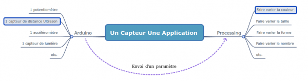 L'objectif de cet article est de montrer sur un exemple simple comment dialoguer entre la carte Arduino et Processing. L'objectif est de mesurer la valeur lue sur UN capteur et de l'envoyer vers le programme Processing comme un paramètre pouvant faire varier la forme ou la couleur d'un graphisme.