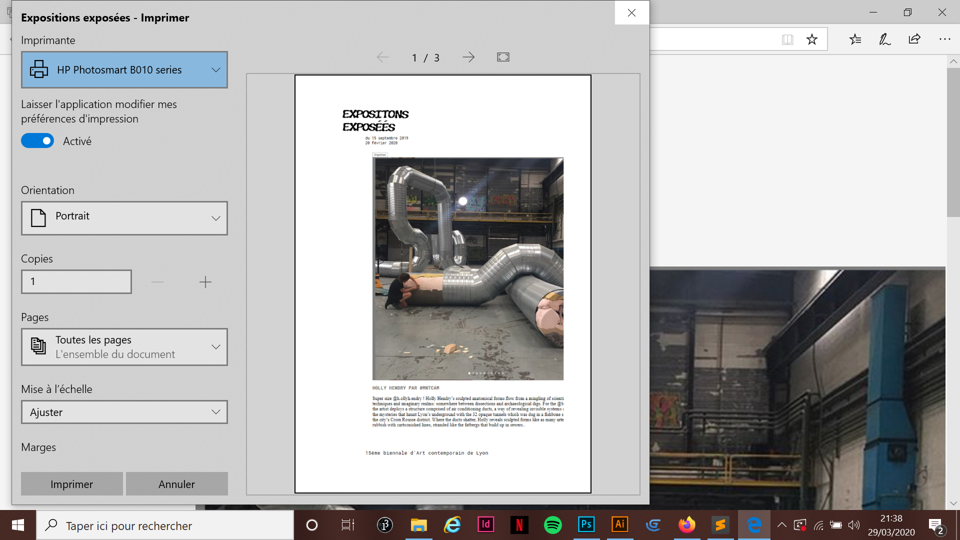 Impression format A4 avec détails. Elle est destiné au public qui fabrique son catalogue exposition en choisissant les images qu'il aime.