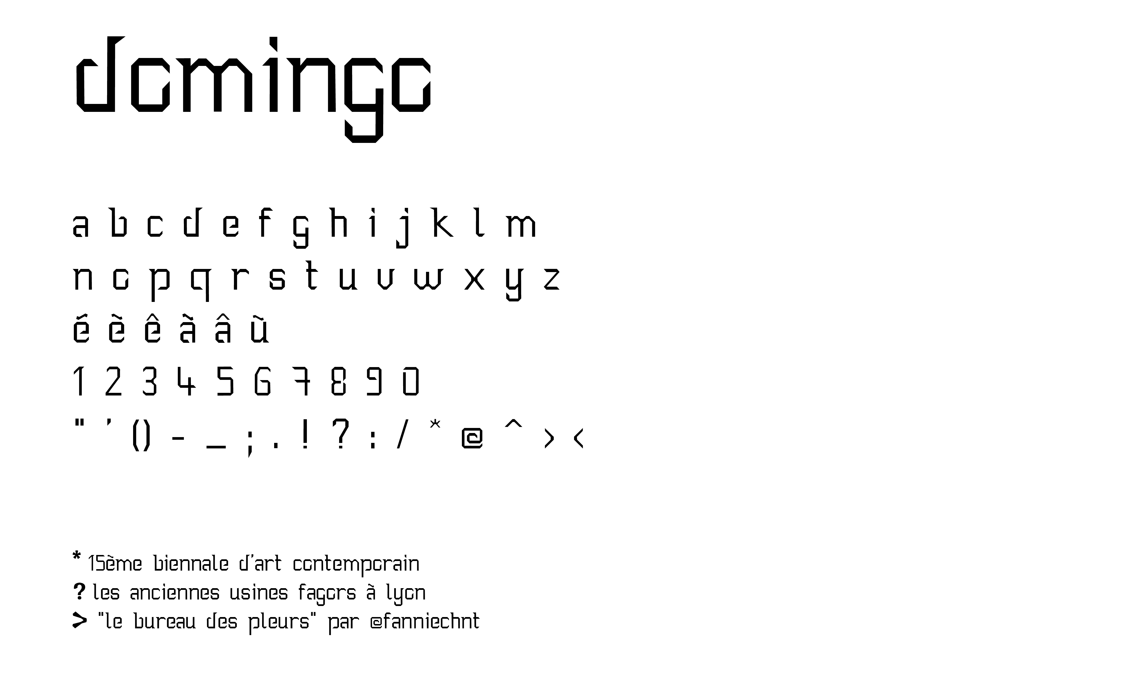 Création d'un caractère avec s'inspirant du normographe. Elle pourrait servir à afficher les informations sur l'exposition, l'oeuvres, le lieu, la date…