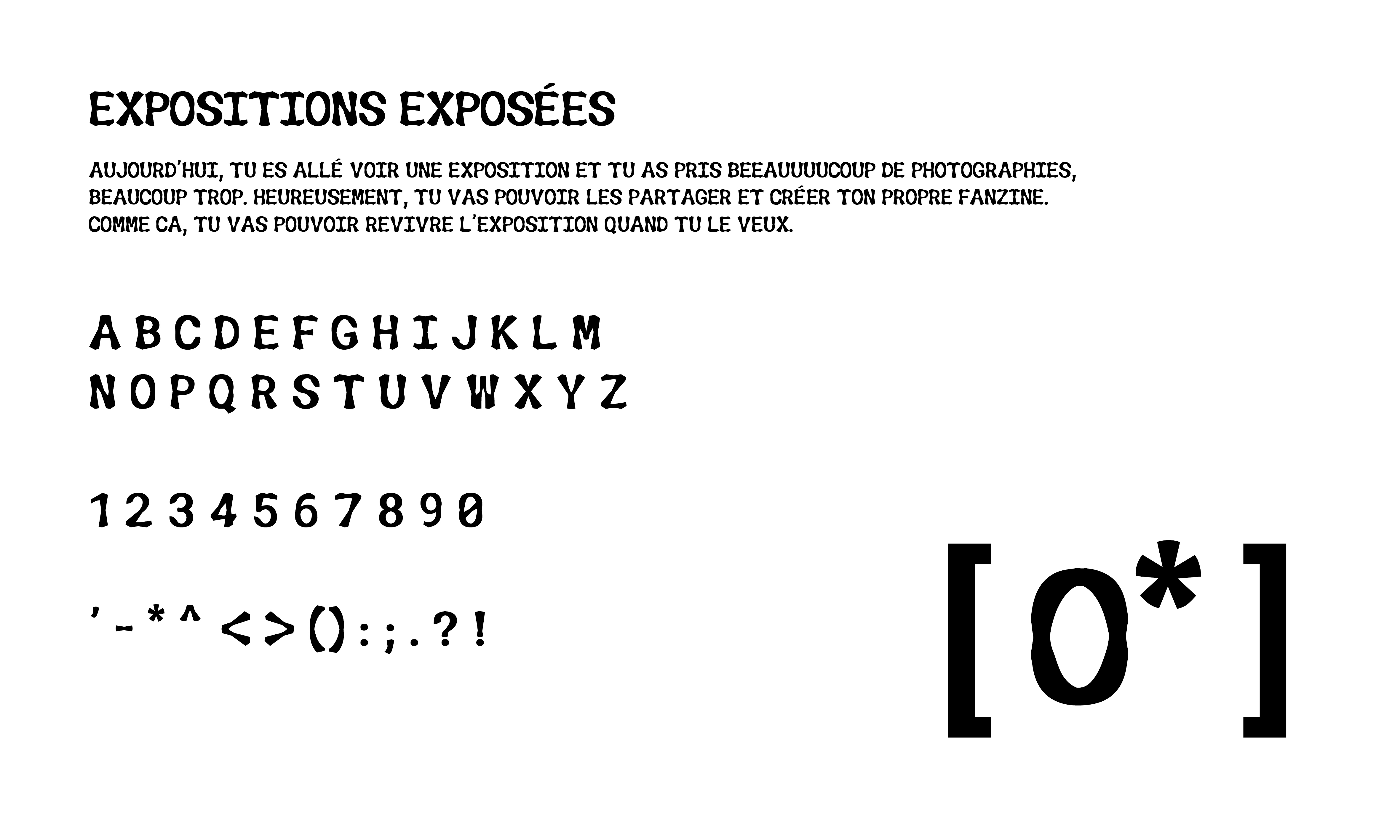 Que ce soit des affiches, des Fanzines ou des catalogues d'expositions il est important que le caractère apparaisse. Ce caractère est gras et majuscule.