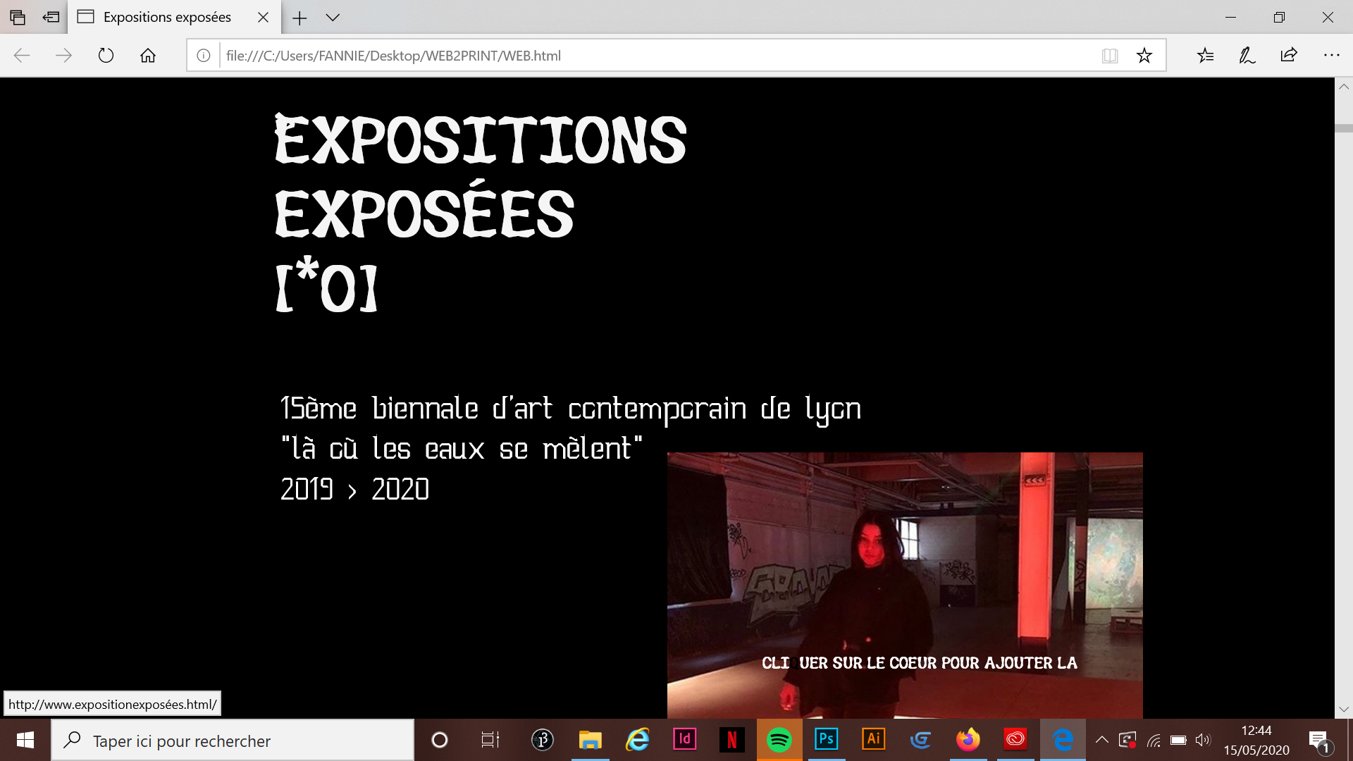 Créer des affiches à partir d'une bibliothèque d'images récoltées sur le compte instagram de la biennale d'art contemporain de Lyon. Le but est de mettre en avant les reproductions d'oeuvres trouvées sur Instagram.