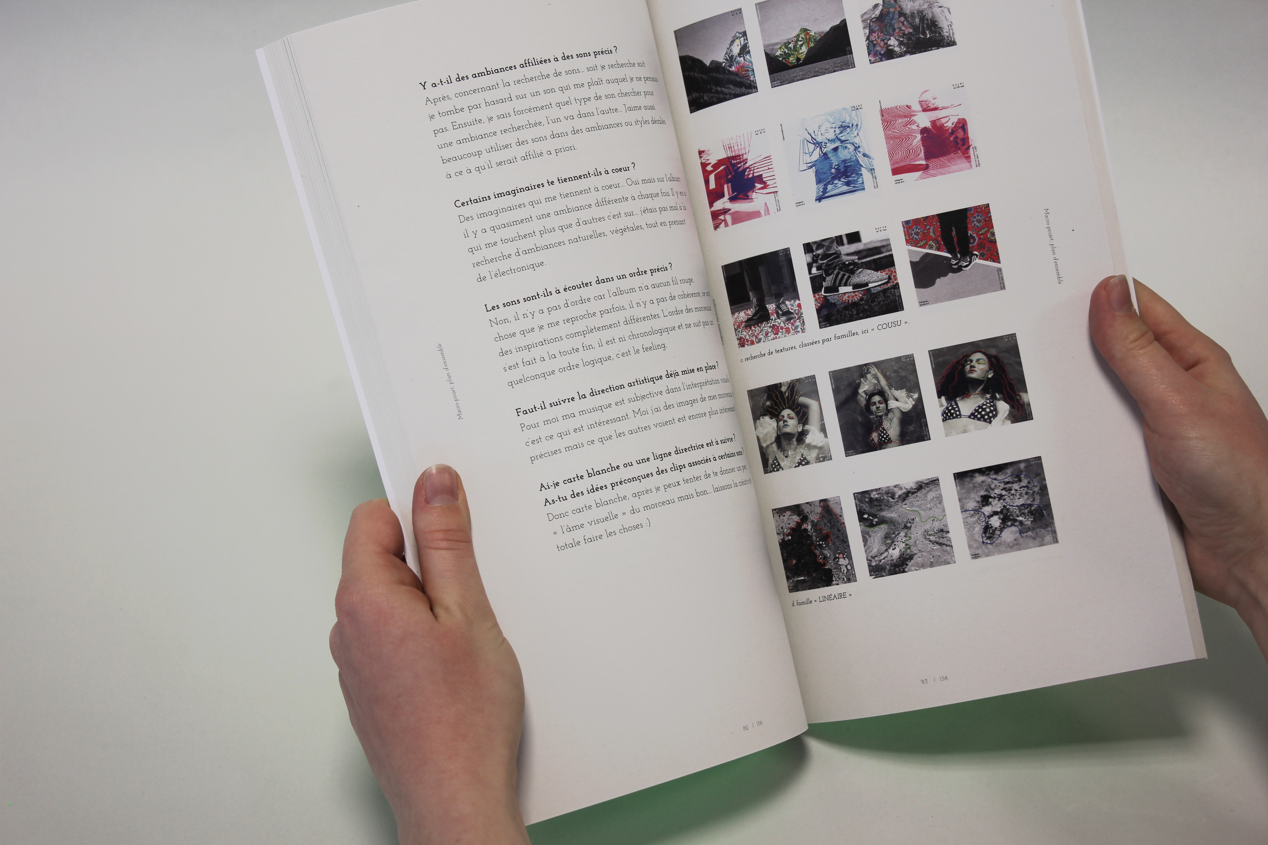 La problématique abordée est analysée en trois étapes. La première “notation”, analyse les systèmes de codes et de symboles utilisés par les chercheurs pour la conversion de la musique en image et de l’image en musique. La seconde, “matériau”, s’intéresse aux créations et aux méthodes de production d’agences de graphisme novatrices, toujours dans le domaine de la musique. La troisième, “atmosphère”, expose la façon dont l’espace et les environnements multidimensionnels peuvent être utilisés par les artistes et les performers pour visualiser le son.