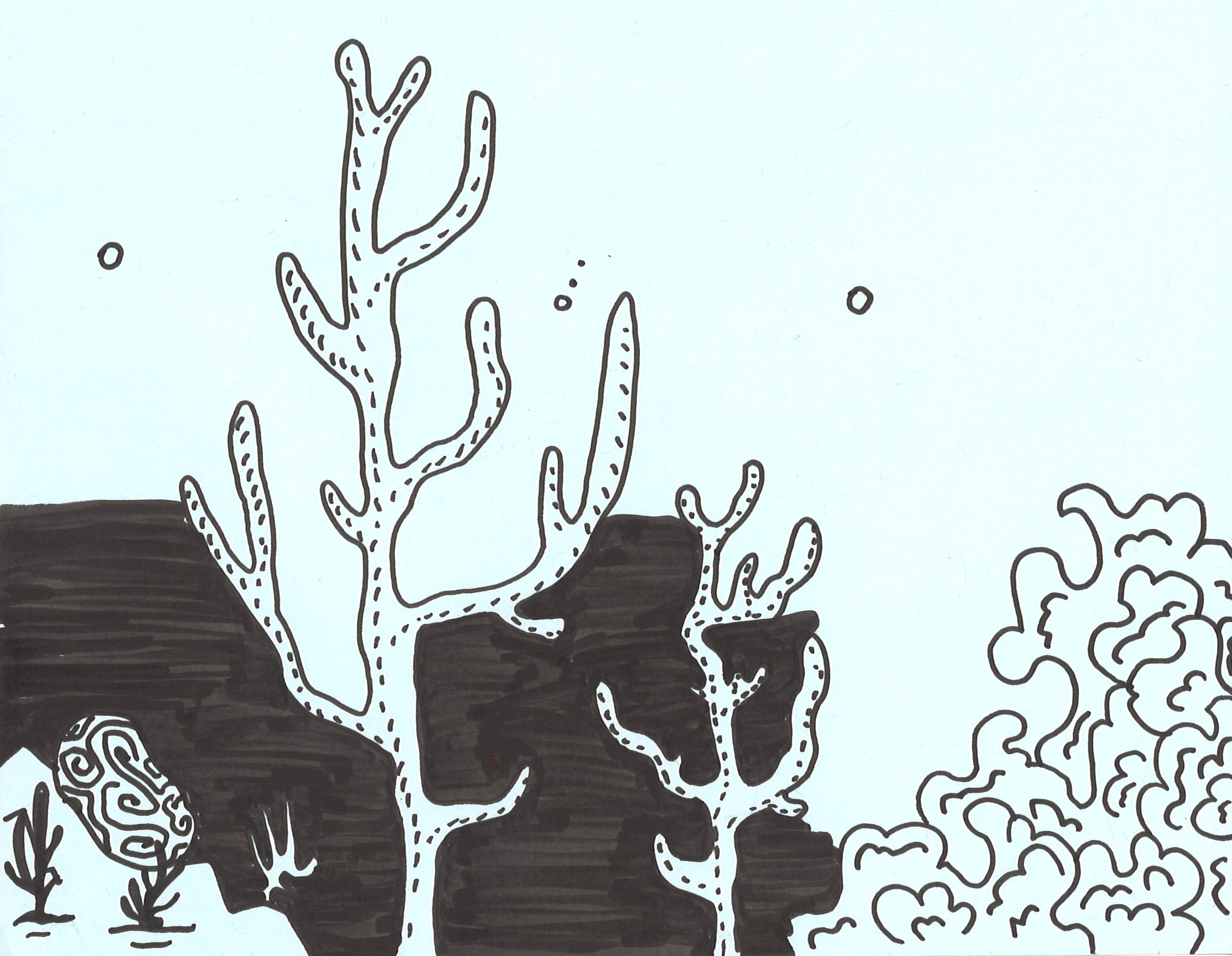 Face à ces constats, j’ai voulu illustrer cet écosystème perturbé à travers un dispositif narratif interactif. J’ai donc imaginé un paysage à faire défiler, et qui prend vie grâce à un effet de parallaxe. Cela permet de “plonger” le spectateur, de l’immerger dans les illustrations. Le paysage poétique proposé au début se transforme, se dégrade petit à petit.