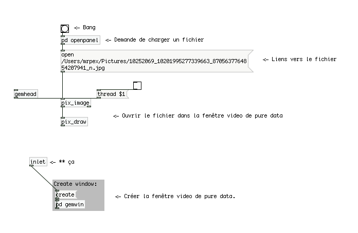 Patch pure data malinette : Télécharger les patch (à coller dans malinette/projects/default). Une fois la malinette ouverte, cliquer sur projet → bouton pour lancer le patch.