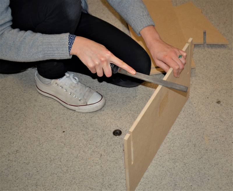 Machines et outils : utilisation de la découpeuse laser, de l'imprimante 3D, de la fraiseuse numérique, de la découpeuse vinyle, de perceuses/viseuses et d'une scie japonaise.