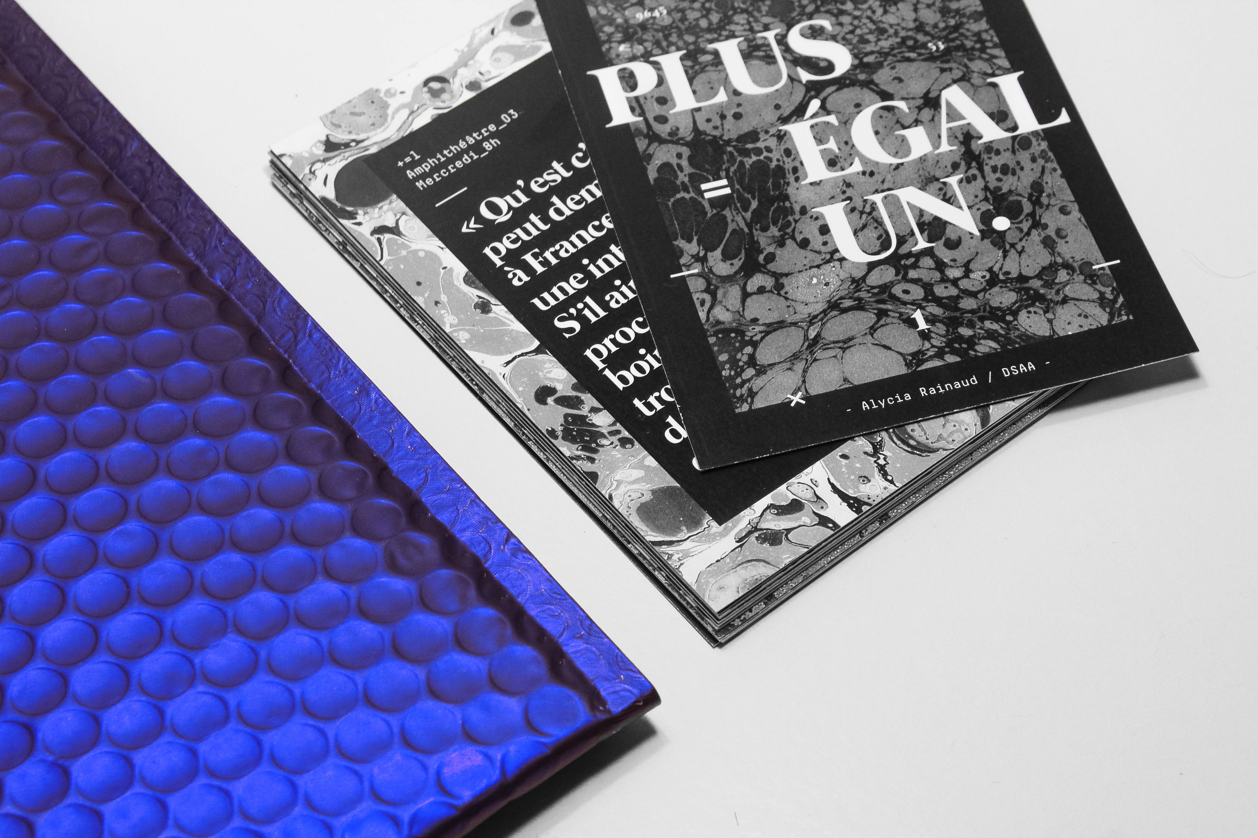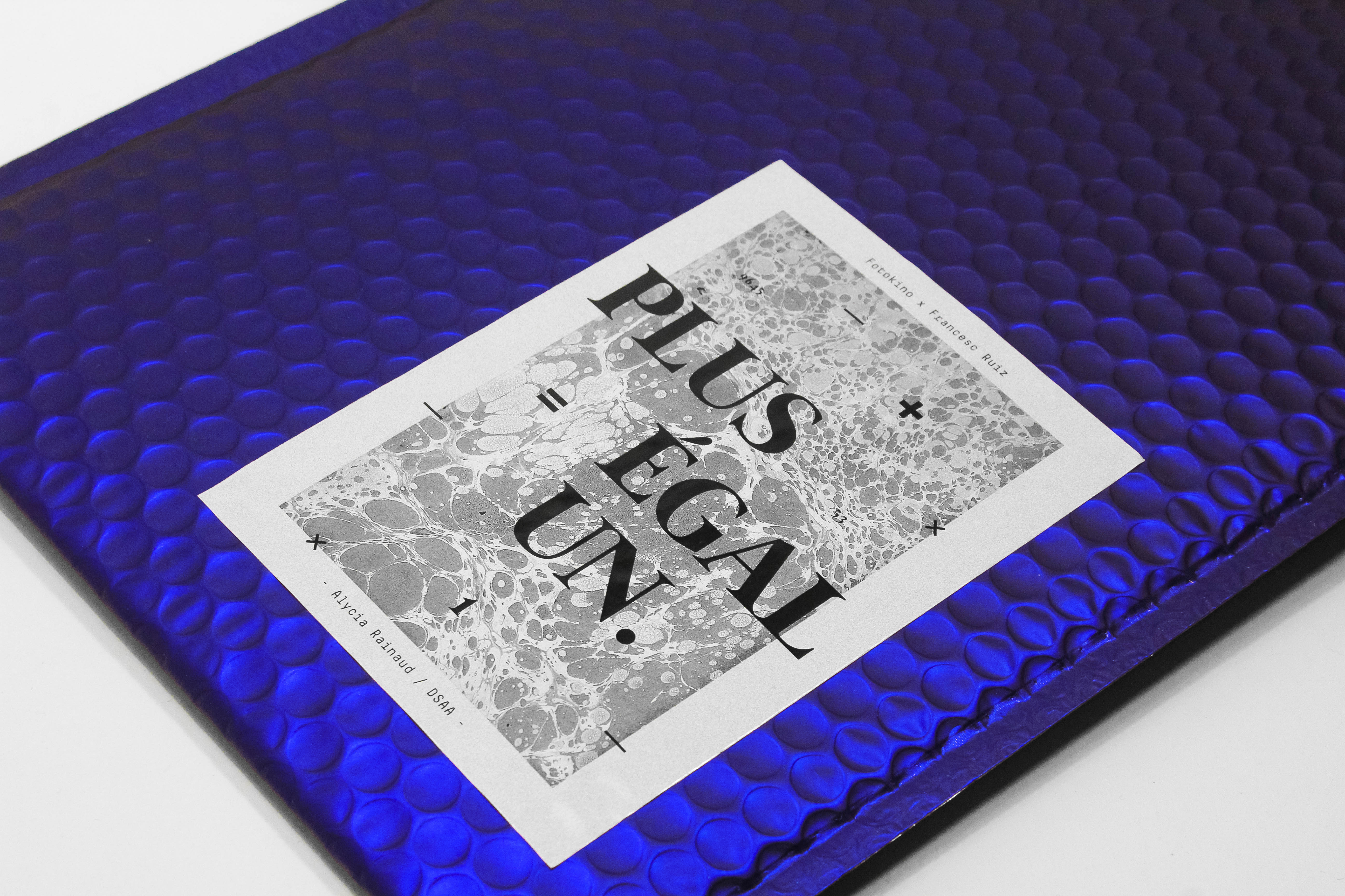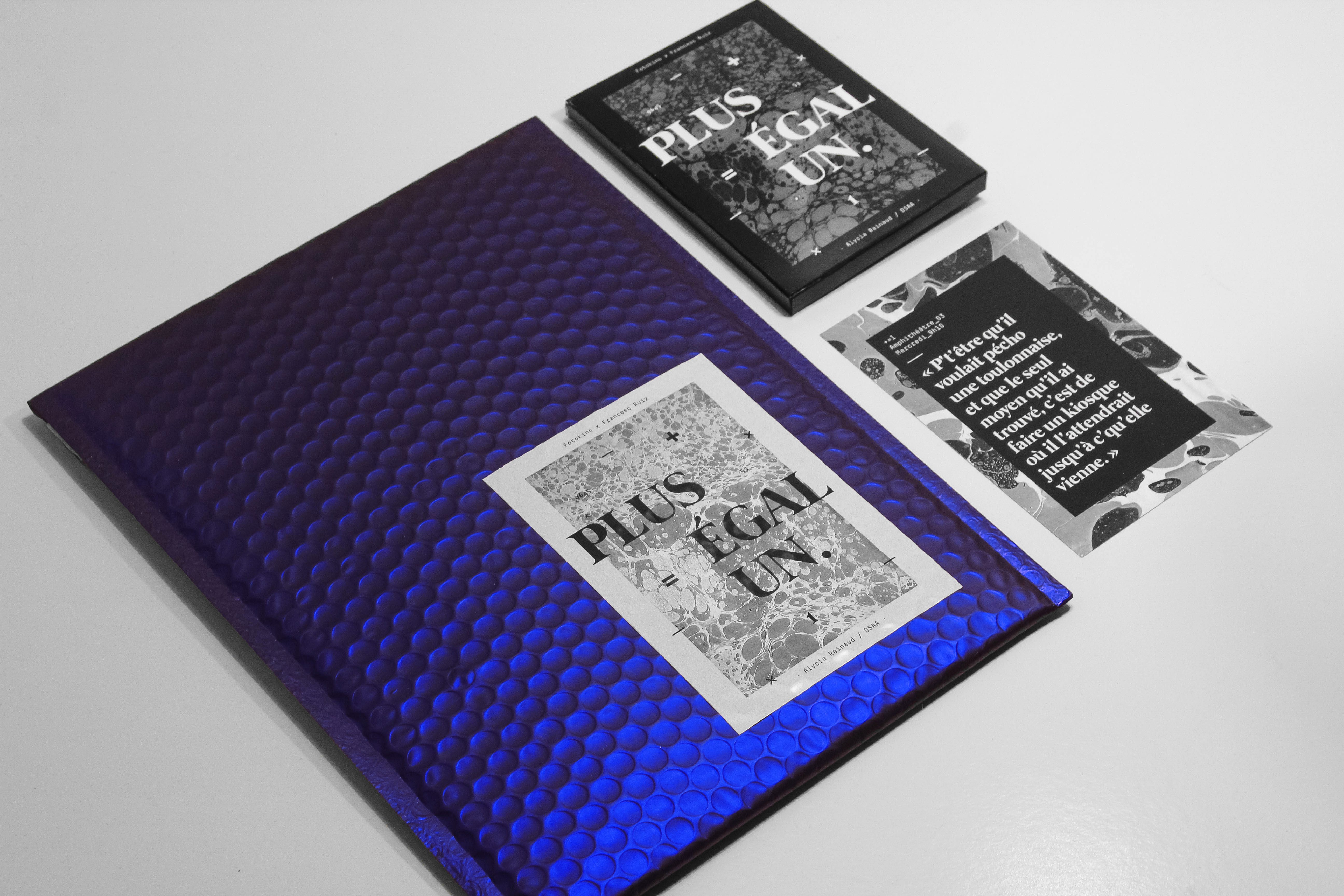 Plus, c’est une aventure de commissariat d’exposition collectif qui a réunie 53 étudiants durant un semestre, autour de l’oeuvre des Kiosques de Toulon, par Francesc Ruiz. Égal, c’est le résultat mené avec succès d’une équation qui prend la forme d’une exposition, dans un nouveau lieu, la galerie Fotokino à Marseille. Égal, c’est aussi l’envie de développer une problématique : la documentation de l’art contemporain. Un, c’est une expérience personnelle en tant qu’étudiant de première année en DSAA, une expérience enrichissante, nouvelle, complexe, mais belle. Plus Égal Un, c’est un reccueil de pensées, de bribes, qui retracent le parcours de cette aventure, vécue de l’intérieur et de manière authentique.