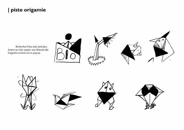 Les animaux, ont unstyle visuel un peu alléger; ils seront présentés de manière assez enfantine, assez légère car, la plupart des espèces microscopiques que l’on retrouve dans les sols peuvent être effrayantes pour une partie du public. L’objectif n’est pas de dérouter le visiteur de la biodiversité mais de le faire se sentir impliqué par les problèmes qui y sont liés. De plus, cela permet de donner une cohérence visuelle entre les grands et les petits animaux. Le but final est de créer un univers assez déconnecté du nôtre ou les échelles se mélangent, afin de créer une sorte de mini écosystème indépendant.