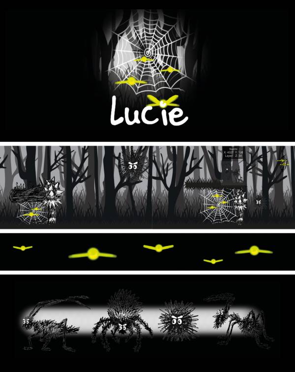 Voici Lucie, une aventure étrange et scintillante à l'échelle des insectes, dans laquelle vous faites évoluer une maman luciole, à la recherche des ses petits. Votre personnage progresse dans un décor sombre et hostile détenue par des créatures maléfiques. La mission est de délivrer toute la colonie qui s'élève à 45 bébés lucioles des pattes des insectes.