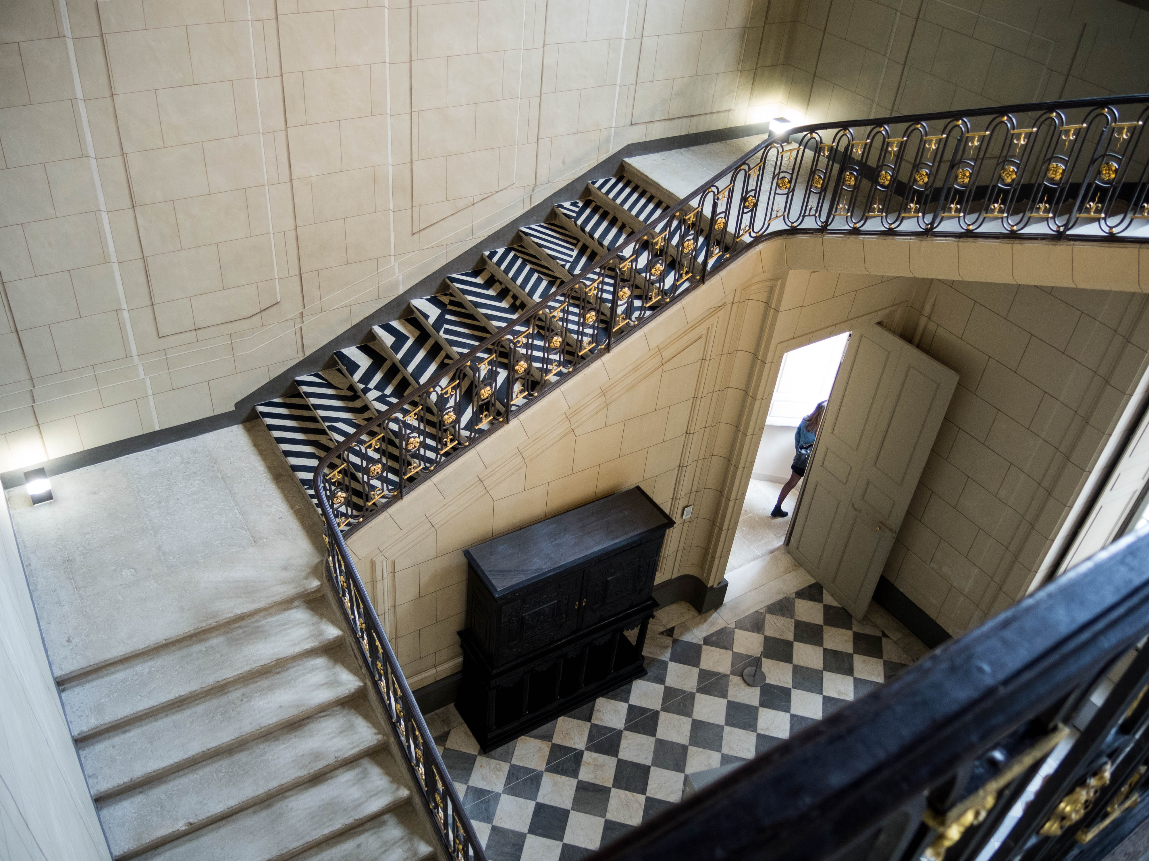 Nous avons recouvert un pan d’escalier du Musée Borely afin de briser les marches et masquer la perspective ainsi que les reliefs. En utilisant le motif camouflage Razzel Dazzel nous faisons disparaître les lignes directrices de l’escalier. Le point de vue du spectateur est important, dans cette situation il se placera en haut des marches.