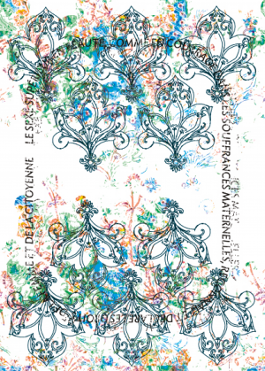 Chaque affiche s’inspire d’un art décoratif et ornemental de l’époque. Chaque affiche fonctionne par paire et la deuxième affiche est déformé et déstructuré en utilisant le motif de la première.