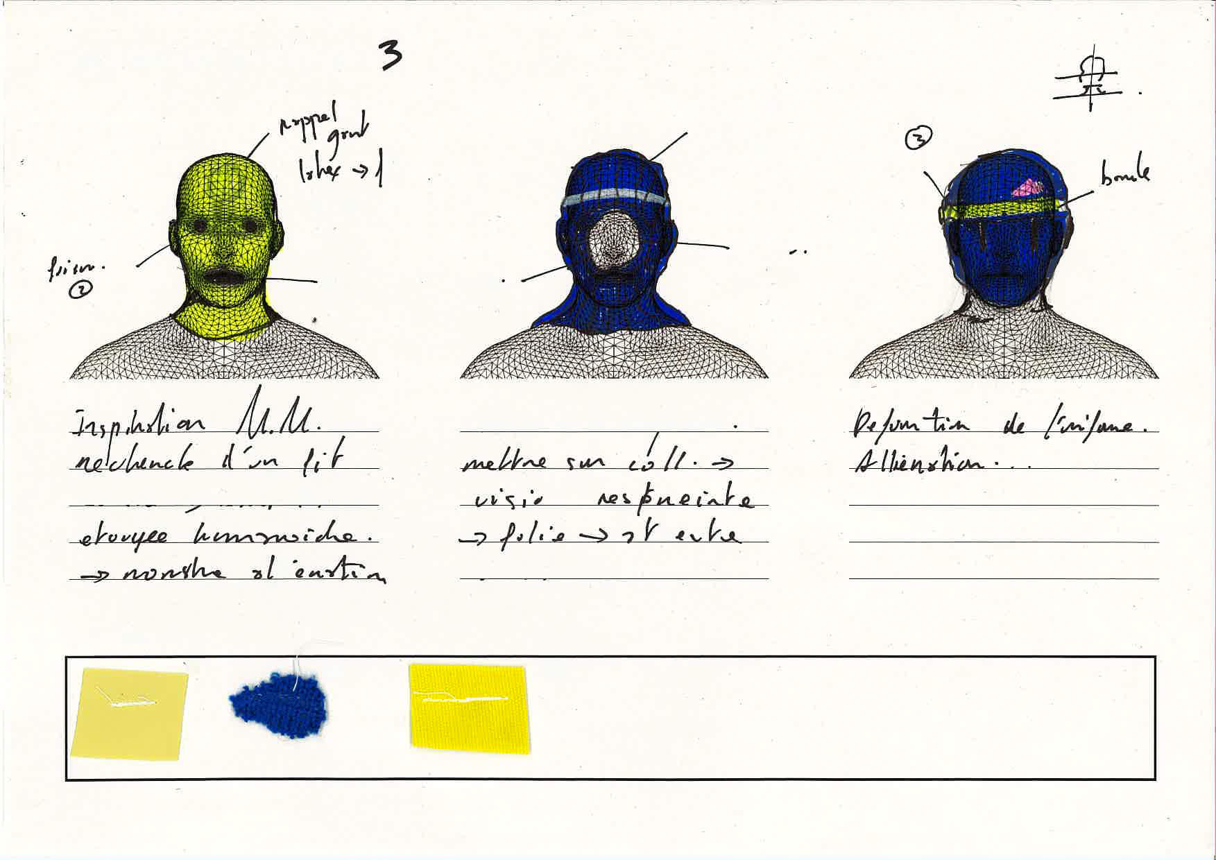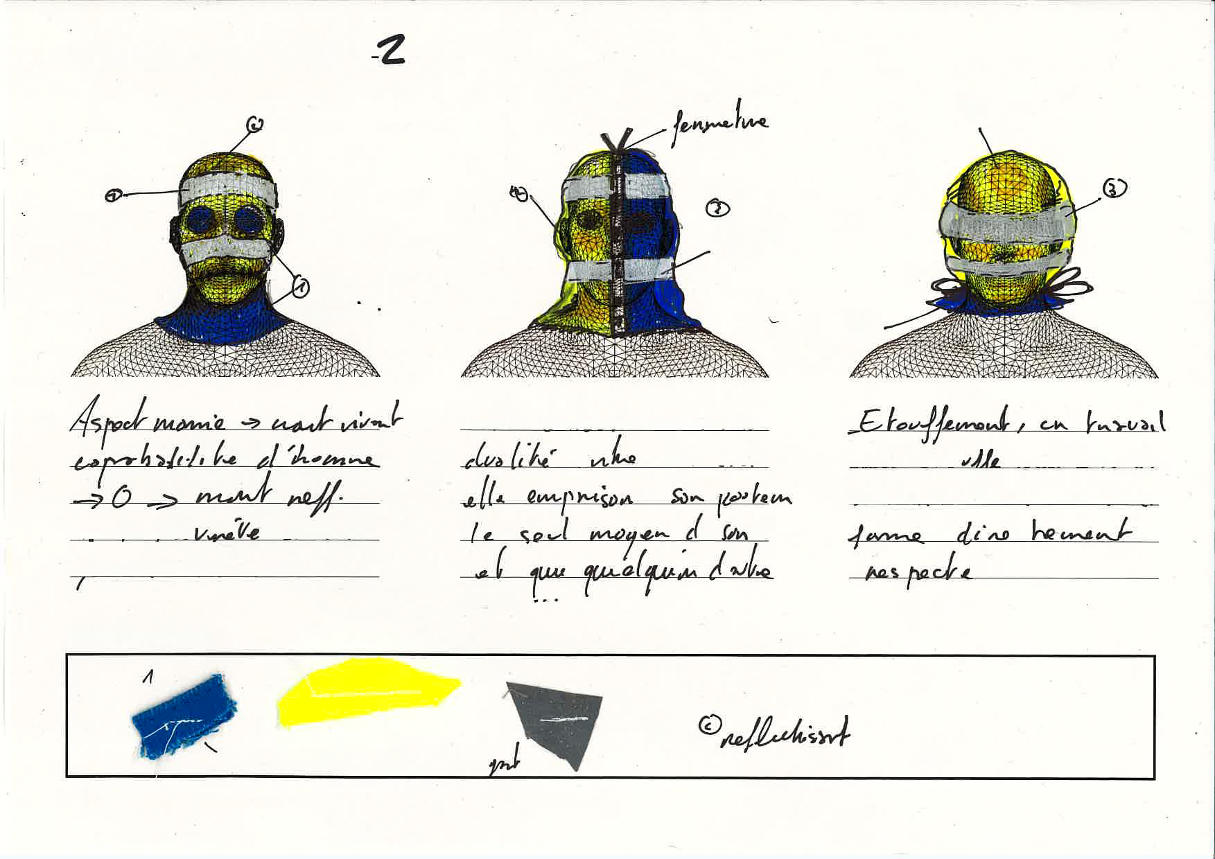J'ai effectué mes recherches en me basant sur les textiles que je vais utiliser mes intentions ont était de masquer et que déshumaniser le plus possibles l'Homme grace à ces cagoules. J'ai réfléchis à un dispositif de 3 cagoules faisant appel chacune a un univers de matériaux et de textiles liés.