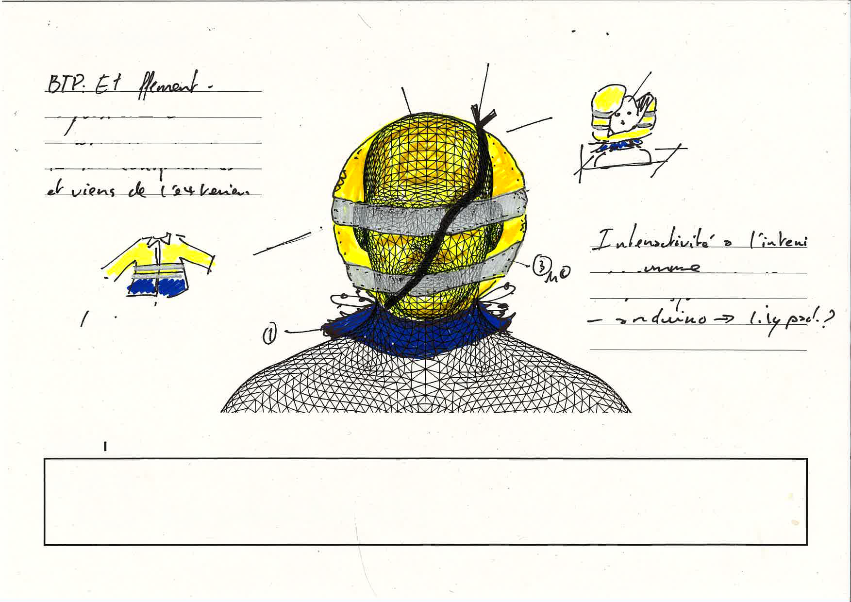 - Materiaux de récupérations ( vêtement de chantier, pull de sécurité, uniforme..) pour me permettre de construire les cagoules