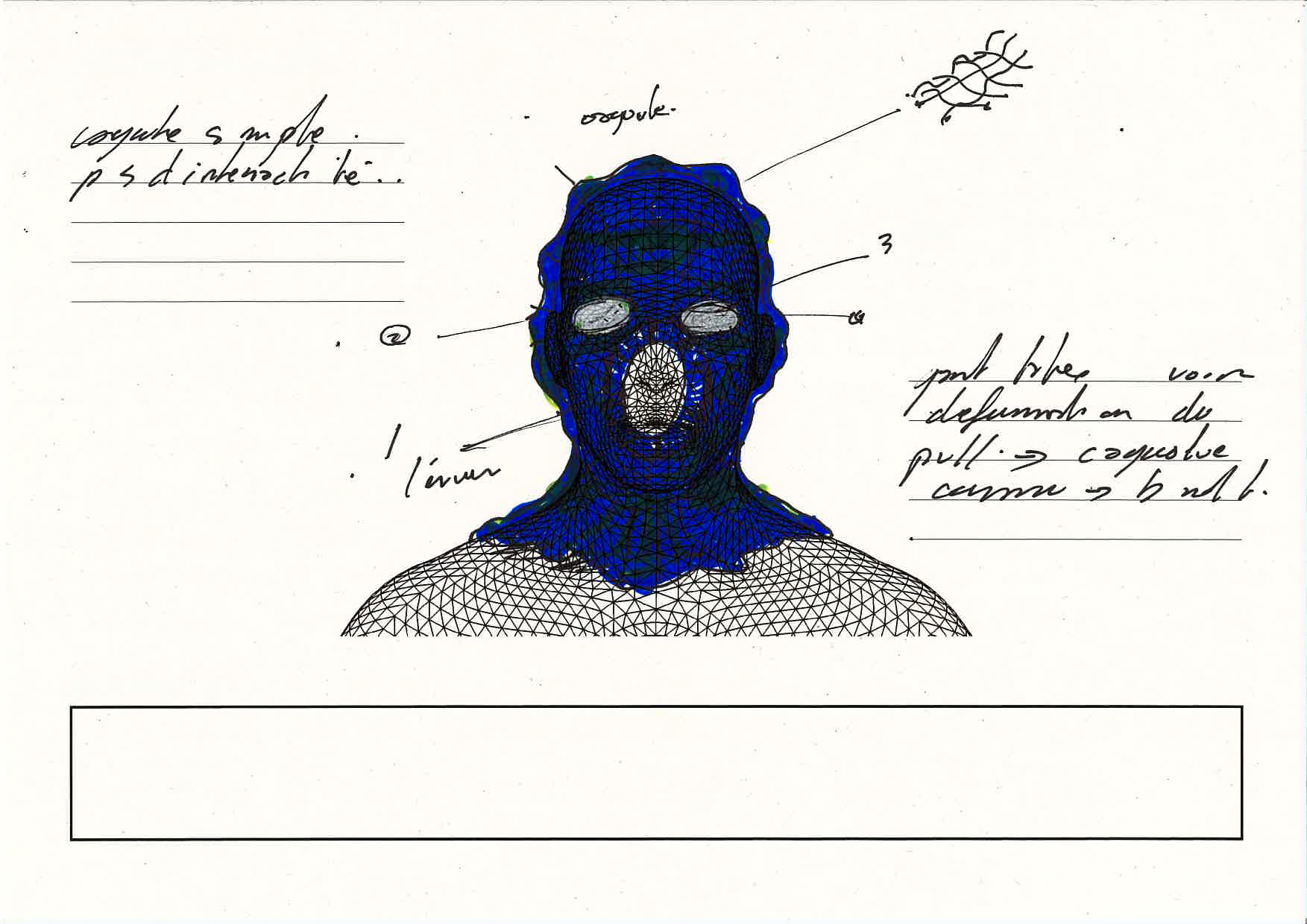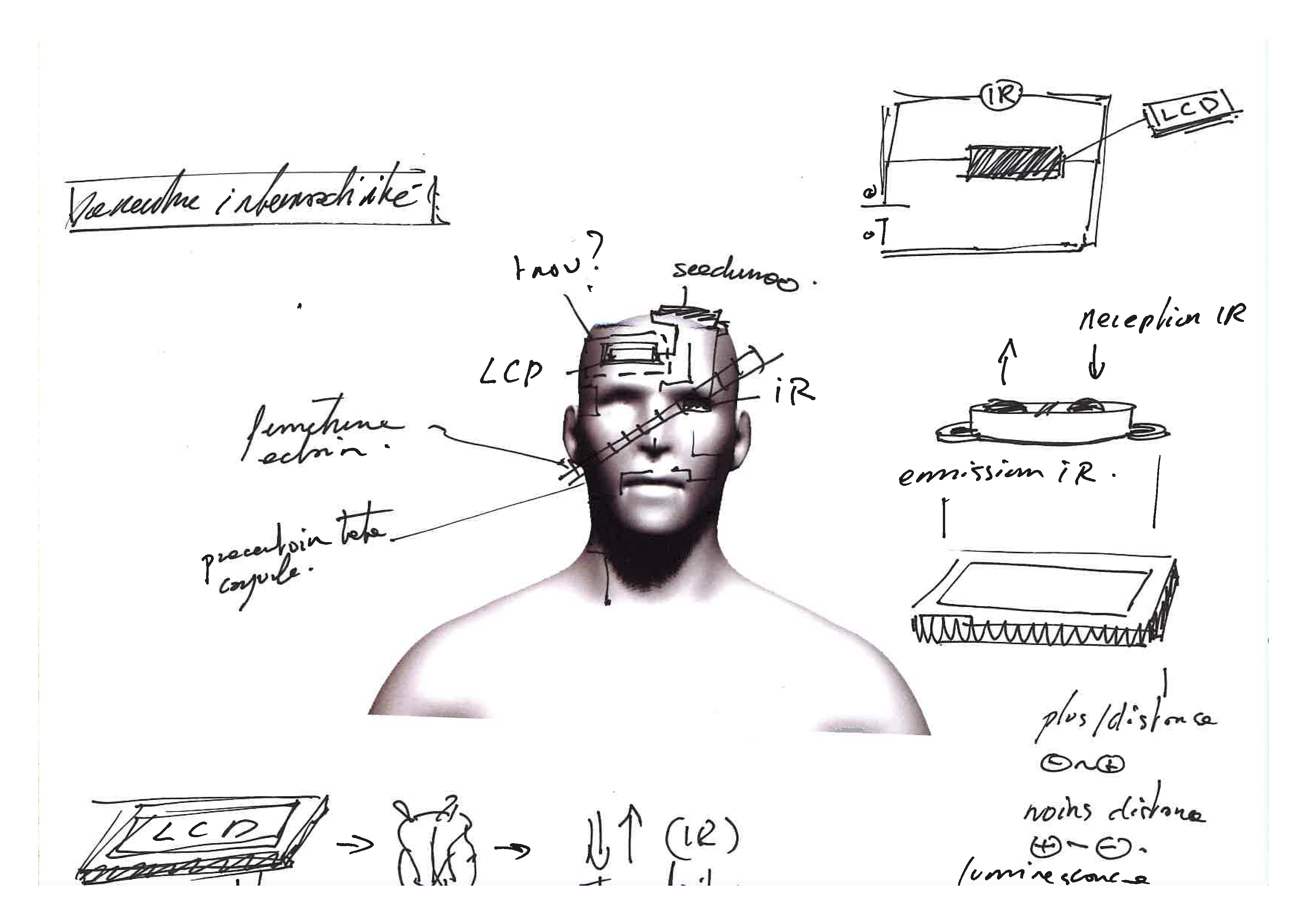 Volonté: L'interactivité ici sert à d'une part rendre interactive l'oeuvre pour alimenter mon propos et créer une narration augmenté. L'interactivité vas ce positionner sur la CAGOULEN2 le fermeture eclair disposé sur la cagoule pourra permettre aux spectateurs d'accéder aux câblage etc.. pour renforcer l'aspect hybridant entre homme qui confronter à un emploie se robotise.