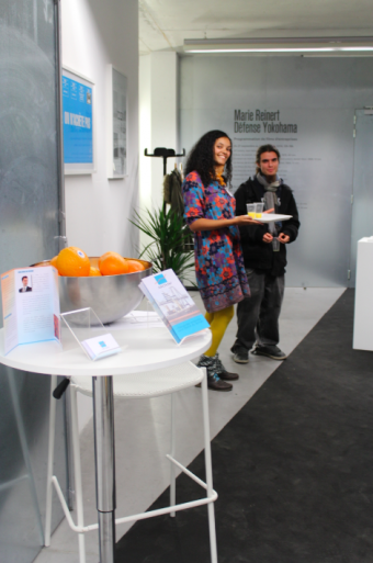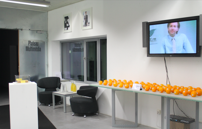 La zone de médiation et de présentation de l'œuvre sera investie pour représenter le même milieu qu'un salon d'entreprise, la promotion d'une société lors d'un événement de communication : mise en place d'un mur “historique” (photo de l'ancien PDG, photographies de la création et de l'évolution de la société jusqu'en 2014, diplômes, comptes rendus…), et un espace actuel (photographie du nouveau PDG, images actuelles, vidéo d'entreprise qui retrace l'histoire avec en voix-off un discours du PDG, stand de cadeaux promotionnels, plaquettes, cartes de visite, présence des représentants de l'entreprise, …). Distribution de nouveaux Goodies d’Aromsi : une Orange, (orange = cadeau de noël, fin d’année / l’orange du prisonnier) avec un autocollant Aromsi dessus, utilisation du terme «offrande». Les Oranges importées via la liaison Rotterdam-Marseille des canaux d'Aromsi. Avec un petit cartel «ses oranges ont été transportées par le canal enfin achevé entre Rotterdam et Marseille».
