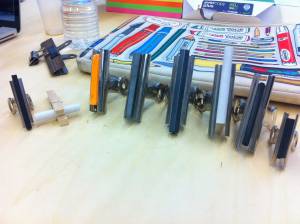 “création” de nouveaux outils (à la manière de Marie Reinert), afin de laisser une trace sur les panneaux, outils de l'expression.