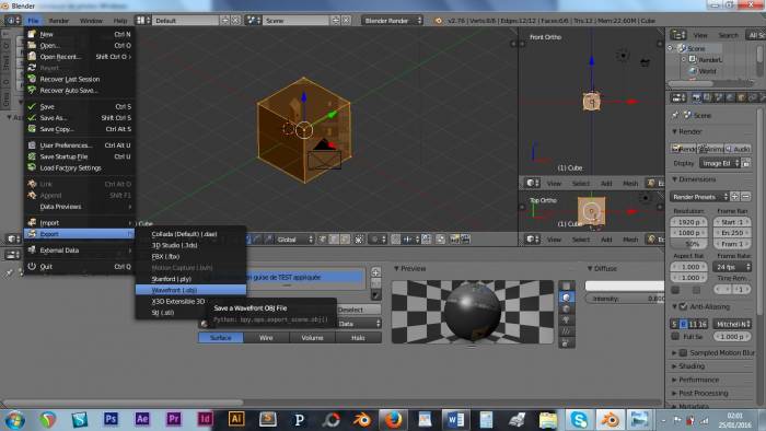 0: Ouvrir le fichier par défaut de Blender. Je vous conseille de paramétrer votre fenêtre de la même manière que la mienne.