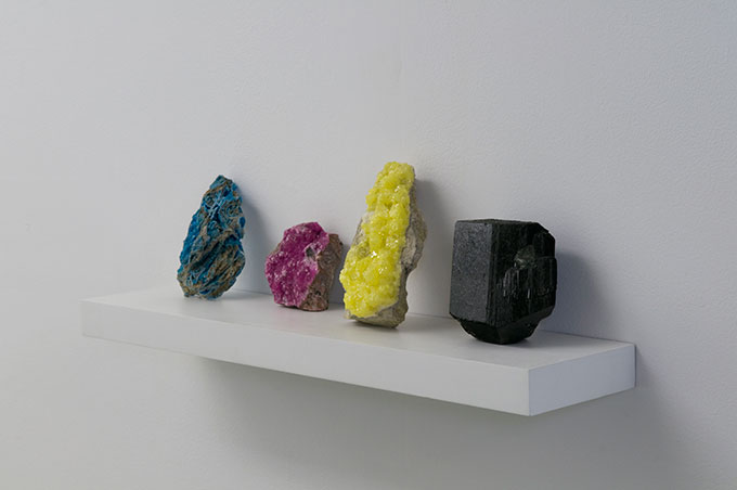 CMYK, 2009, 4 pierres semi-précieuses non polies, étagère blanche.