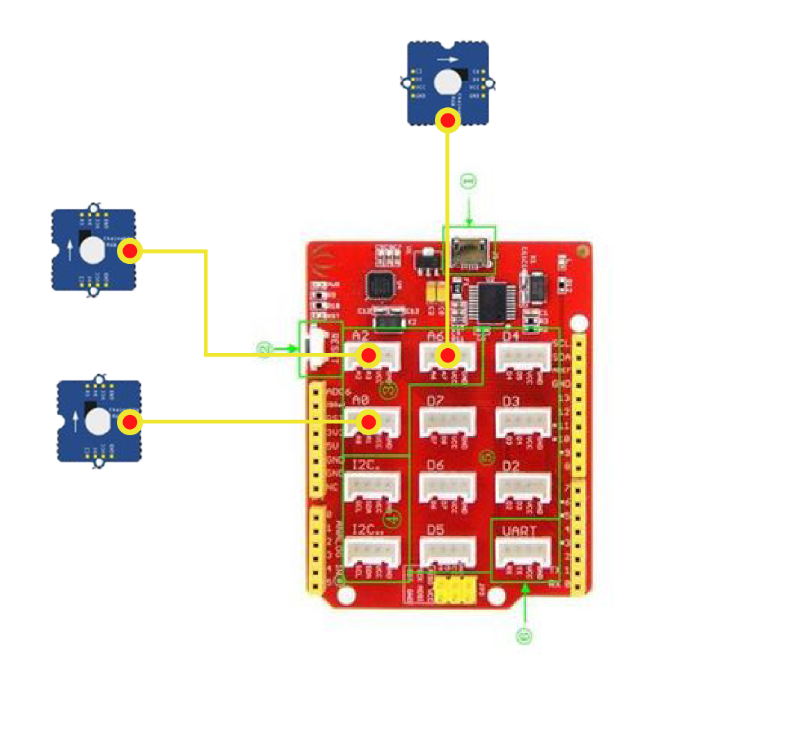 Brancher les capteur groove arduino à la carte seeeduino grâce aux câbles du capteur