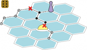 Si le fantôme arrive sur un bord du plateau lors de son déplacement il s'arrête et ne termine pas son déplacement latéral, s'il ne l'a pas encore fait, il se déplace ensuite selon le deuxième dé.