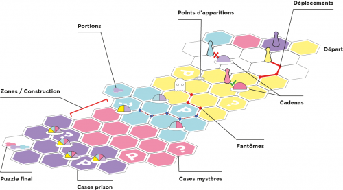 Au fur et à mesure de la partie des fantômes vont apparaître sur le plateau pour venir ralentir et compliquer le déplacement des joueurs. Si un fantôme rattrape et touche un joueur celui-ci est envoyé sur une case prison et y reste bloqué 3 tour. Si tous les joueurs sont en prison en même temps la partie est perdue pour tout le monde.