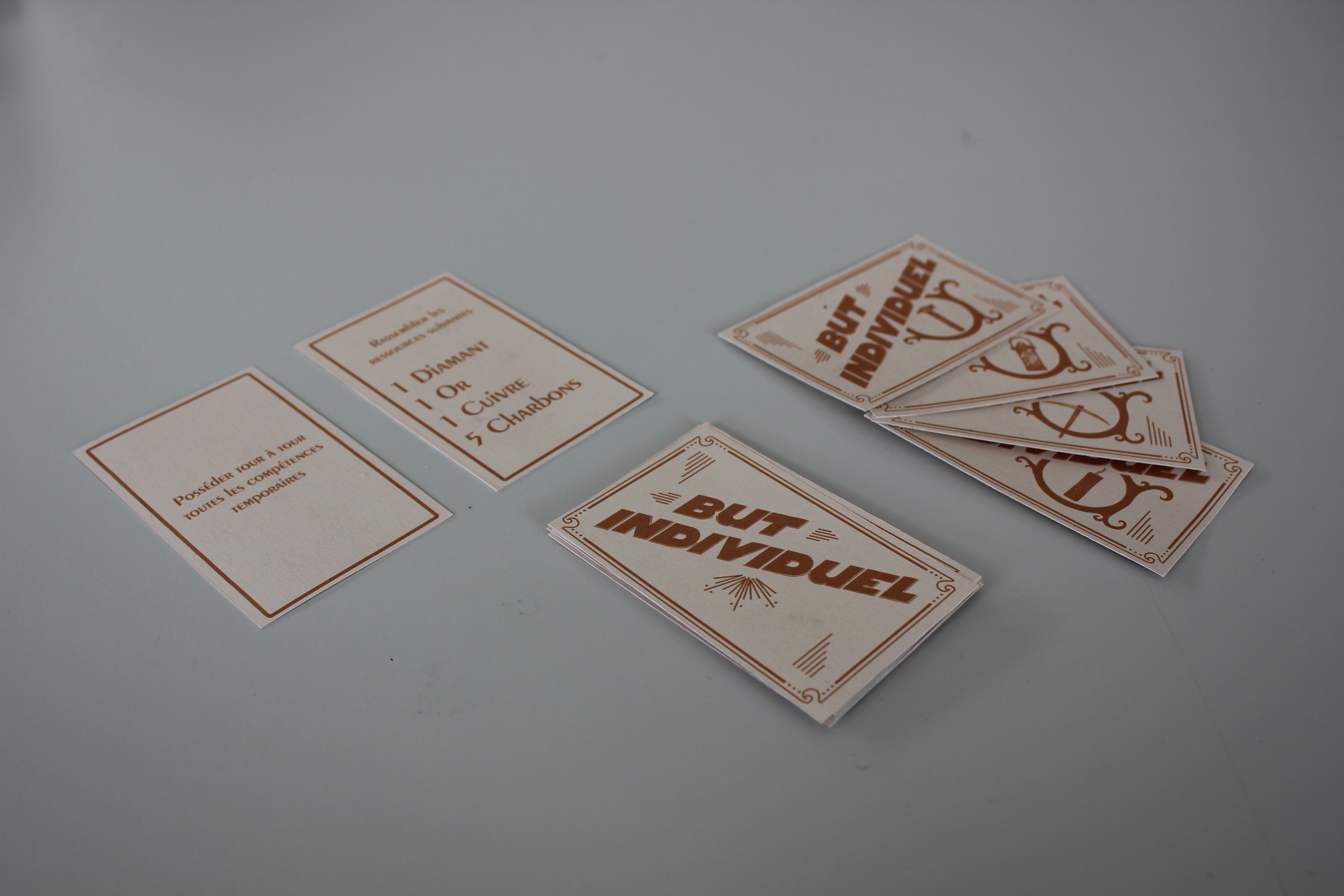 Un but individuel doit obligatoirement être pioché en début de partie dans la pioche de cartes de buts individuels, par chaque joueur. Les buts individuels ont tous des récompenses qui serviront plus ou moins le but commun. Lors de la partie, si un joueur atteint son but individuel et pense pouvoir en accomplir un autre, il peut décider d'en piocher d'autres. Le joueur ayant accomplir le plus de buts individuels durant la partie ressort comme un Super-Gagnant parmi les gagnants. Il ne faut pas qu'un joueur termine la partie en ayant un but individuel inaccompli, peu importe le nombre de buts individuels qu'il a accompli avant.