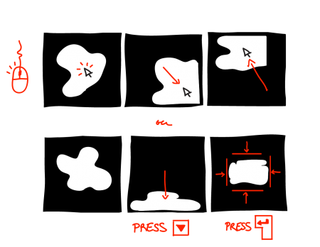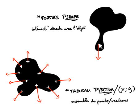 L'idée serait de générer une forme, une image vectorielle ou un assemblage de polygone pouvant représenter un élément qui constitue le corps humain. On déformerait cet objet à l'aide de commandes pré-enregistrées, qui représenteraient chacune un événement, ou de manière mécanique en interagissant avec le curseur dans la souris.