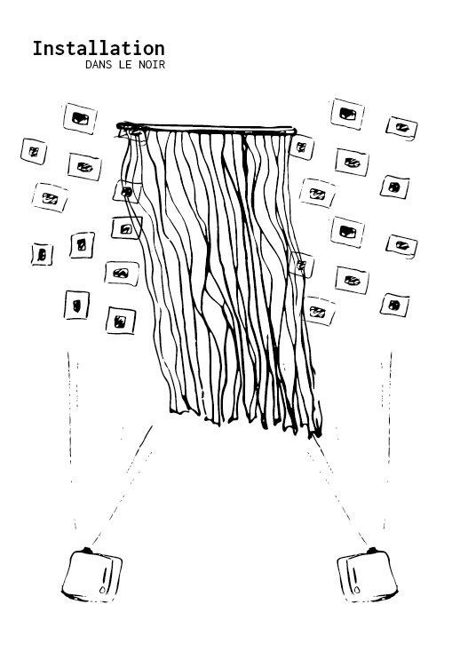 Je souhaite réaliser un visuel qui sera projeté sur l'objet final (de ma pratique plastique) avec des visuels d'altération avec un programme aléatoire sur Processing. Le but étant d'obtenir tissage noir sur fond blanc qui au passage du curseur commence à s'étioler, s'effilocher, comme si nous étions acteurs de son altération. Plus nous appauvrissons le tissage, plus nous laissons entrevoir l'oeuvre sur laquelle est projetée le programme.