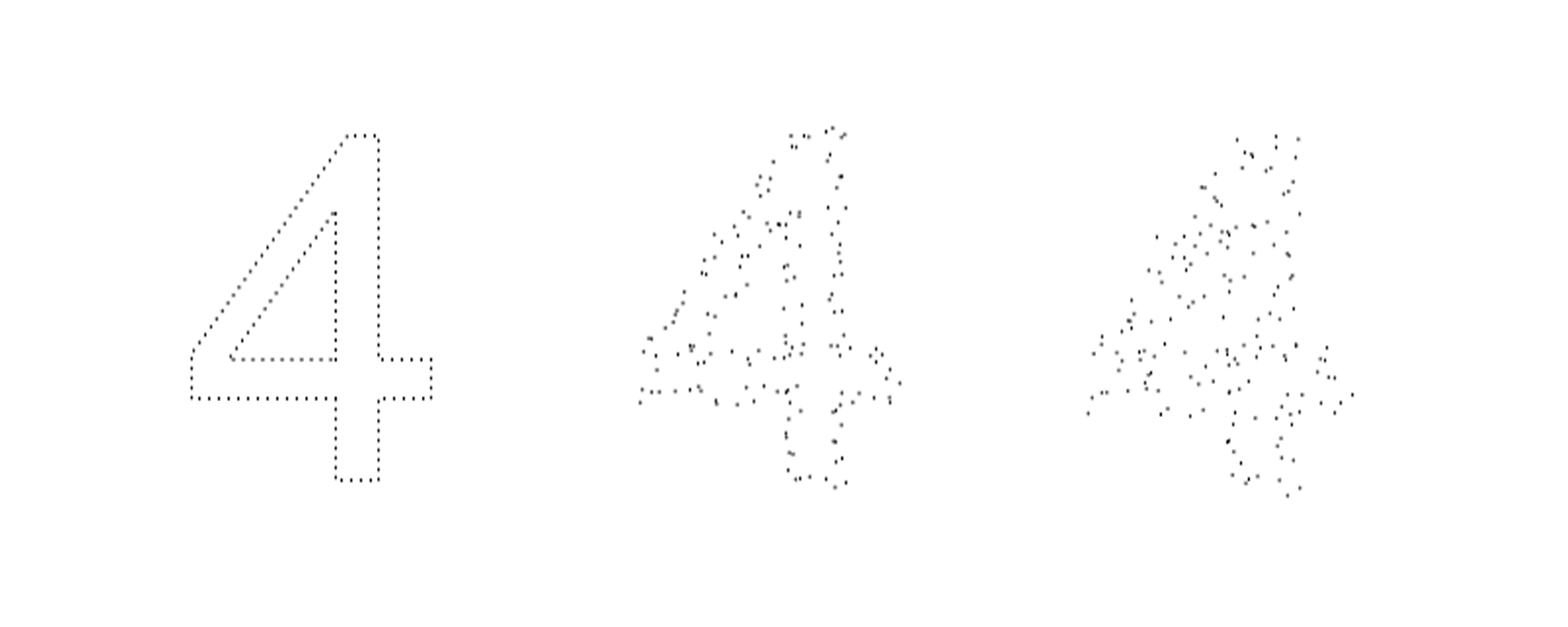 • PROJET 1 : PROCESSING - Logo génératif, ordonner un processus aléatoire, avec l'utilisation de la librairie géomérative et la classe balle. En bougeant le curseur de la souris sur l'abscisse “x”, le chiffre “4” explosent et les balles s'éparpillent.