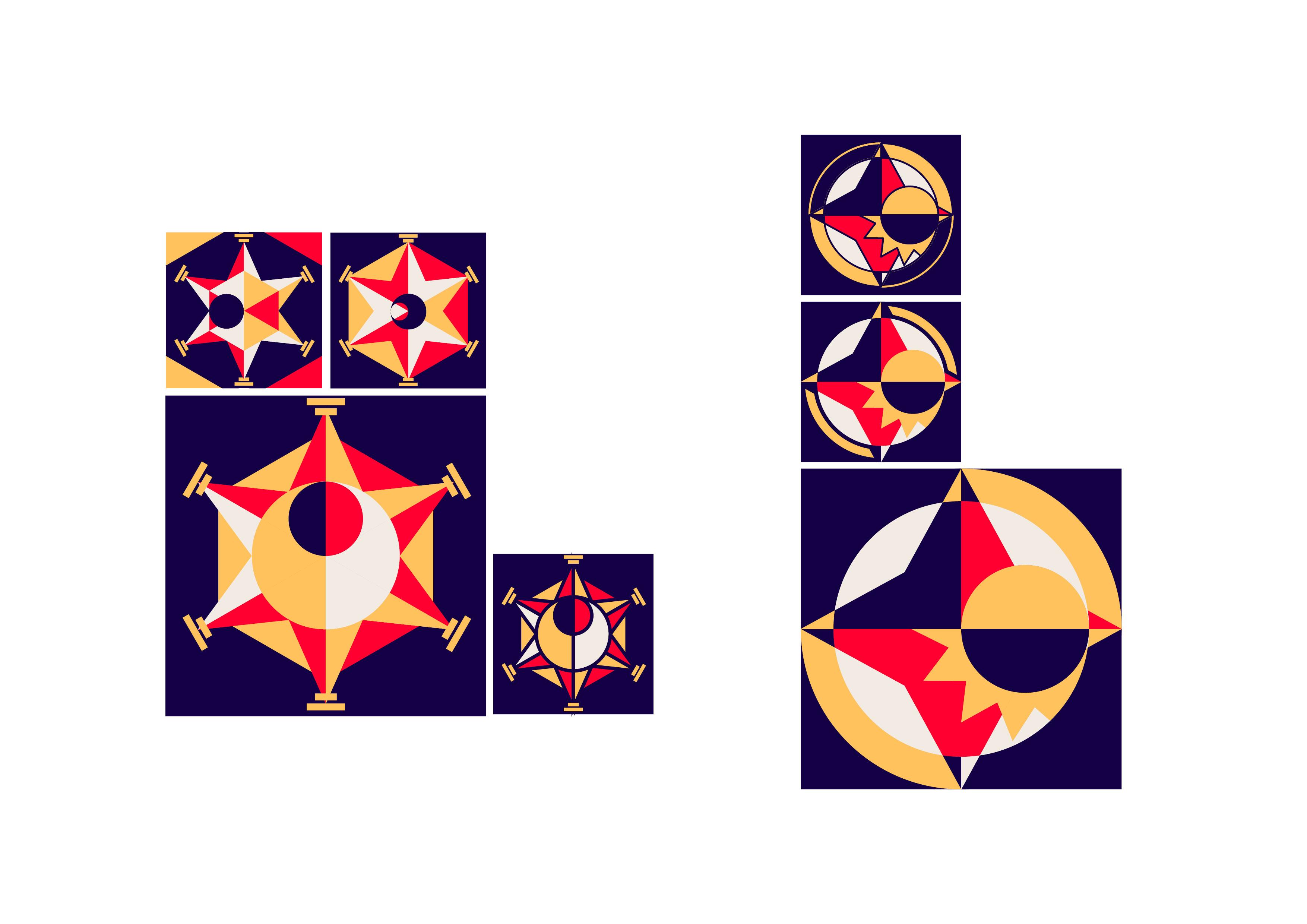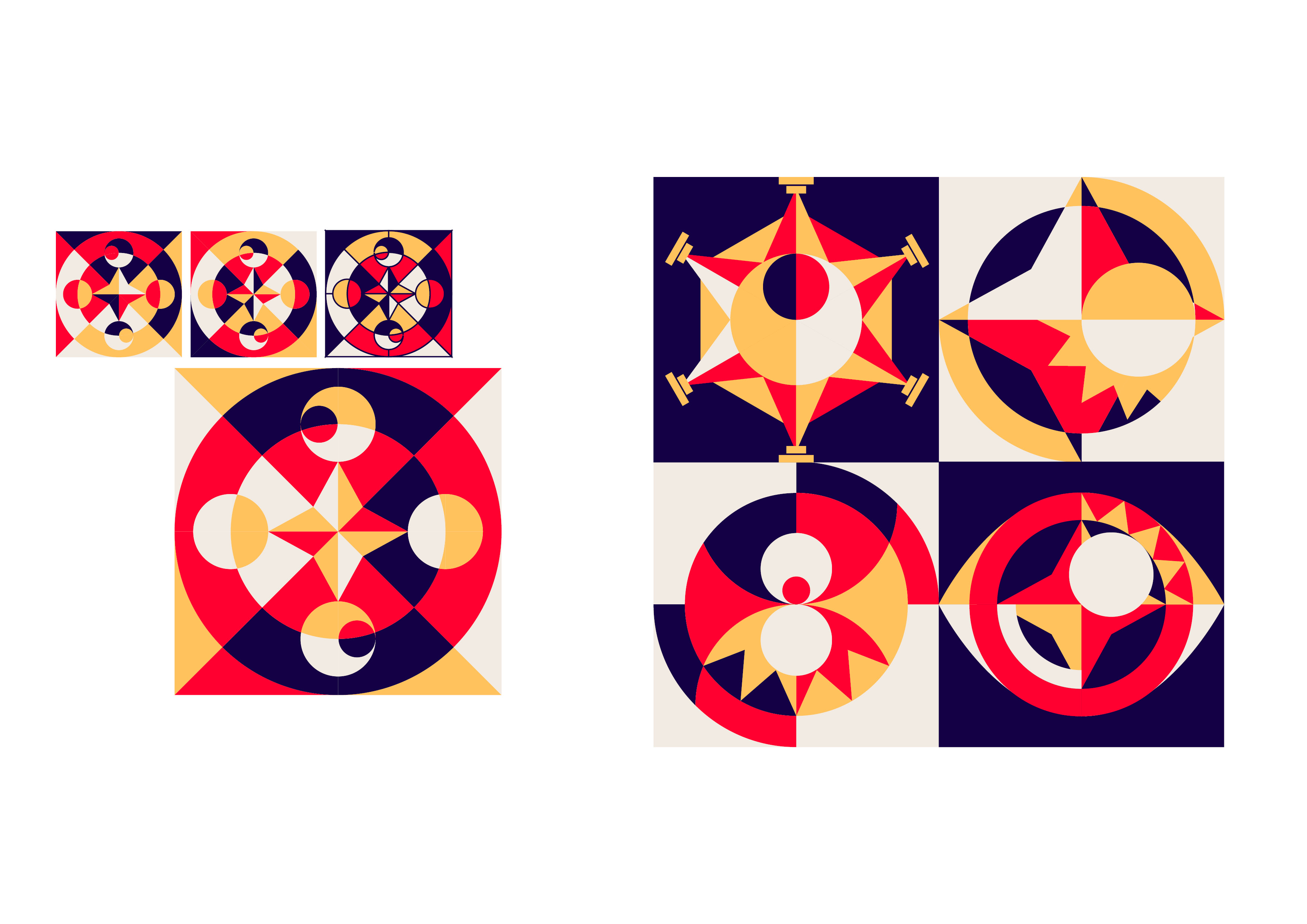 L’assemblage de diverses formes géométriques ont permis de styliser chacunes des scènes et éléments pour en extraire des modules singuliers.