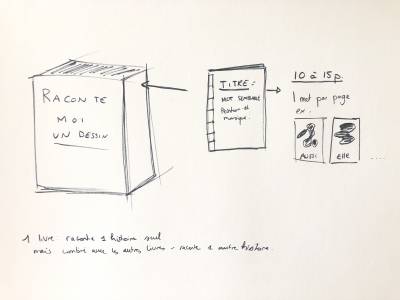 Avec toutes mes recherches je vais donc créer des petits livrets de 10 à 12 pages. Ces livrets seront tous rassemblés dans une petite boite en carte au nom du projet. Chaque livret racontera une histoire avec un réel sens ou pas, ces mots seront écrits par le lecteur. La seule indication au bas de la page sera “verbe” “adjectif” etc. C'est ensuite au lecteur de choisir. Un livret raconte une histoire, mais en combinants tous les livrets ensemble, une nouvelle histoire se créer.