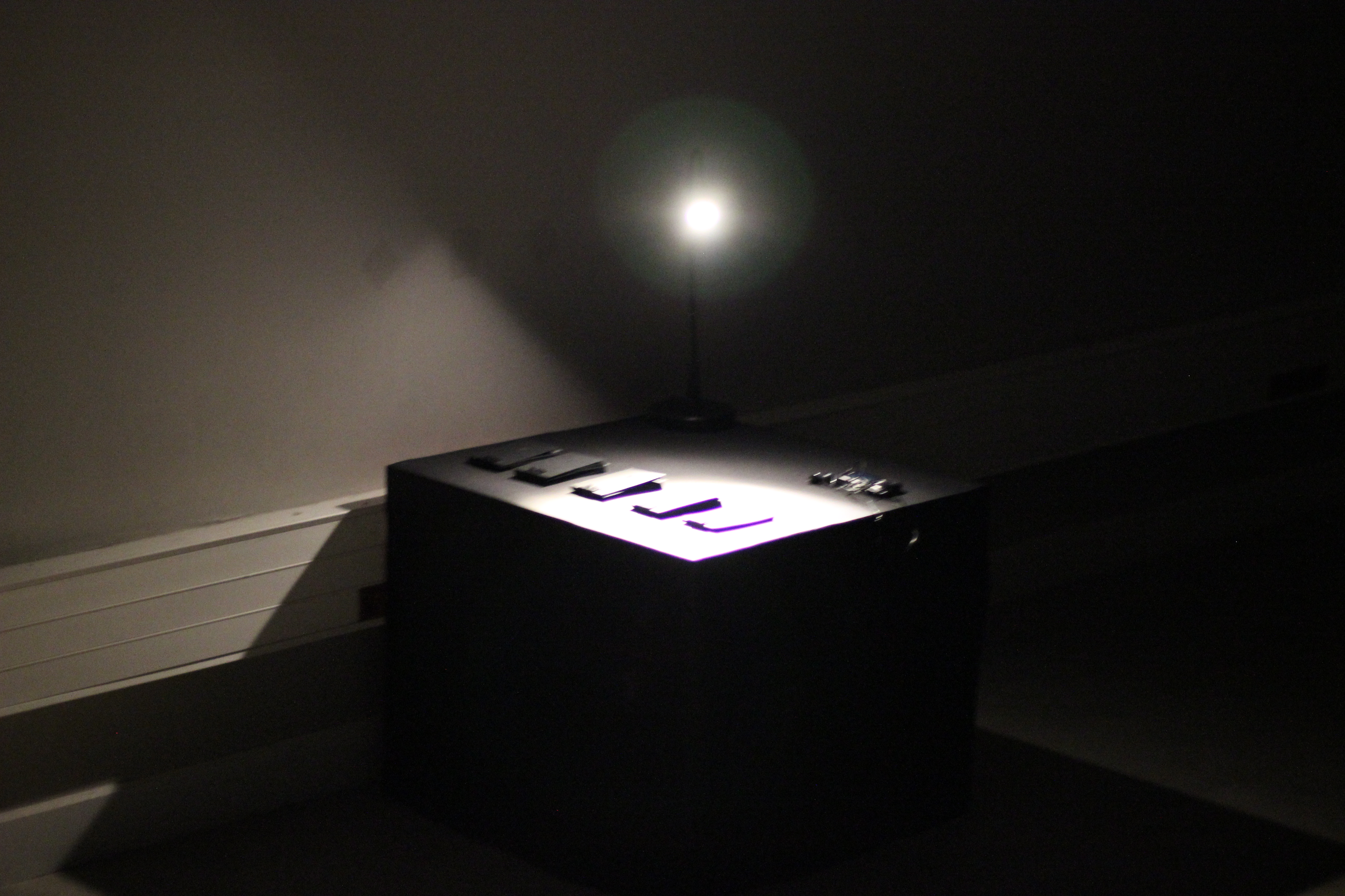 Afin de représenter le temps de la mort j’ai choisi de donner une esthétique froide et radicale à mon projet, de le rendre quelque peu inconfortable. Pour symboliser le chemin parcouru durant la réincarnation j’ai réalisé cinq flipbooks représentant les cinq étapes par lesquelles il faut passer : le néant, la déambulation dans l’inconnu, la recherche d’humanité, la rencontre qui nous transforme et, finalement, la création de la vie. Ces cinq étapes sont donc dépeintes dans les flipbooks mais également dans leur fabrication : d’entièrement mécanique pour les deux premiers (massicot et poinçon) à fait à la main (cutter et scalpel), ce qui me permet de passer d’un objet très froid à un autre plus sensible et donc de passer de la rigidité de la mort à l’imperfection de la vie. Chaque flipbook est à feuilleter en écoutant une musique à l’aide d’écouteurs de façon à isoler le spectateur dans l’œuvre comme on l’est face à la mort. Le même schéma, de mécanique à sensible, est présent dans ces sons : les premiers mettent en scène des bruits mécaniques tandis que les derniers sont extraits de la vie.
