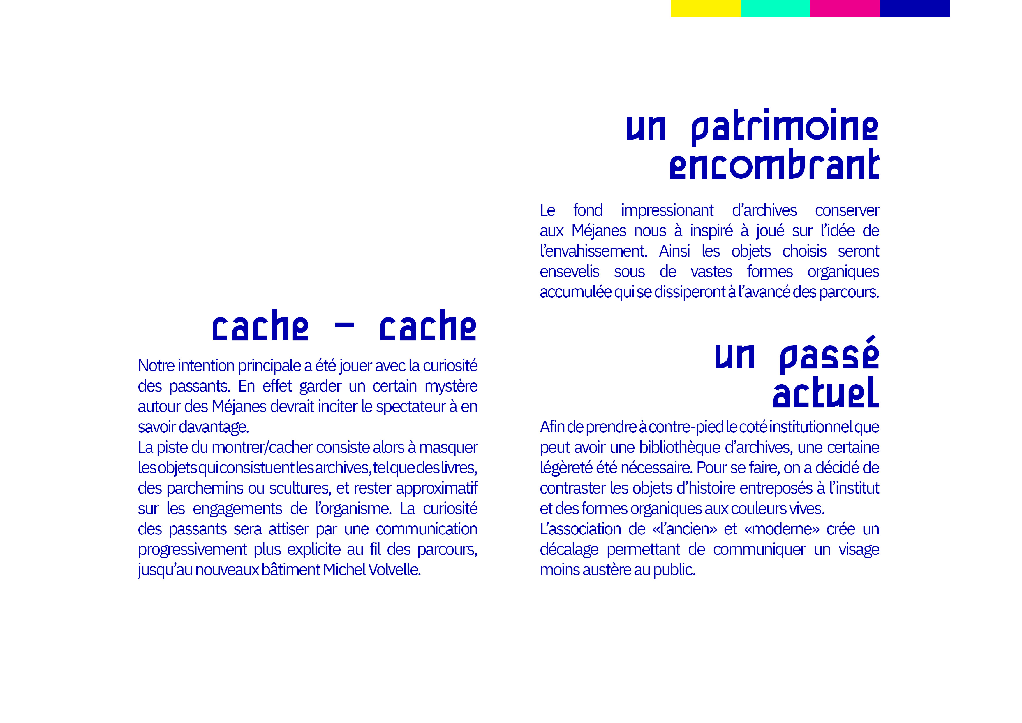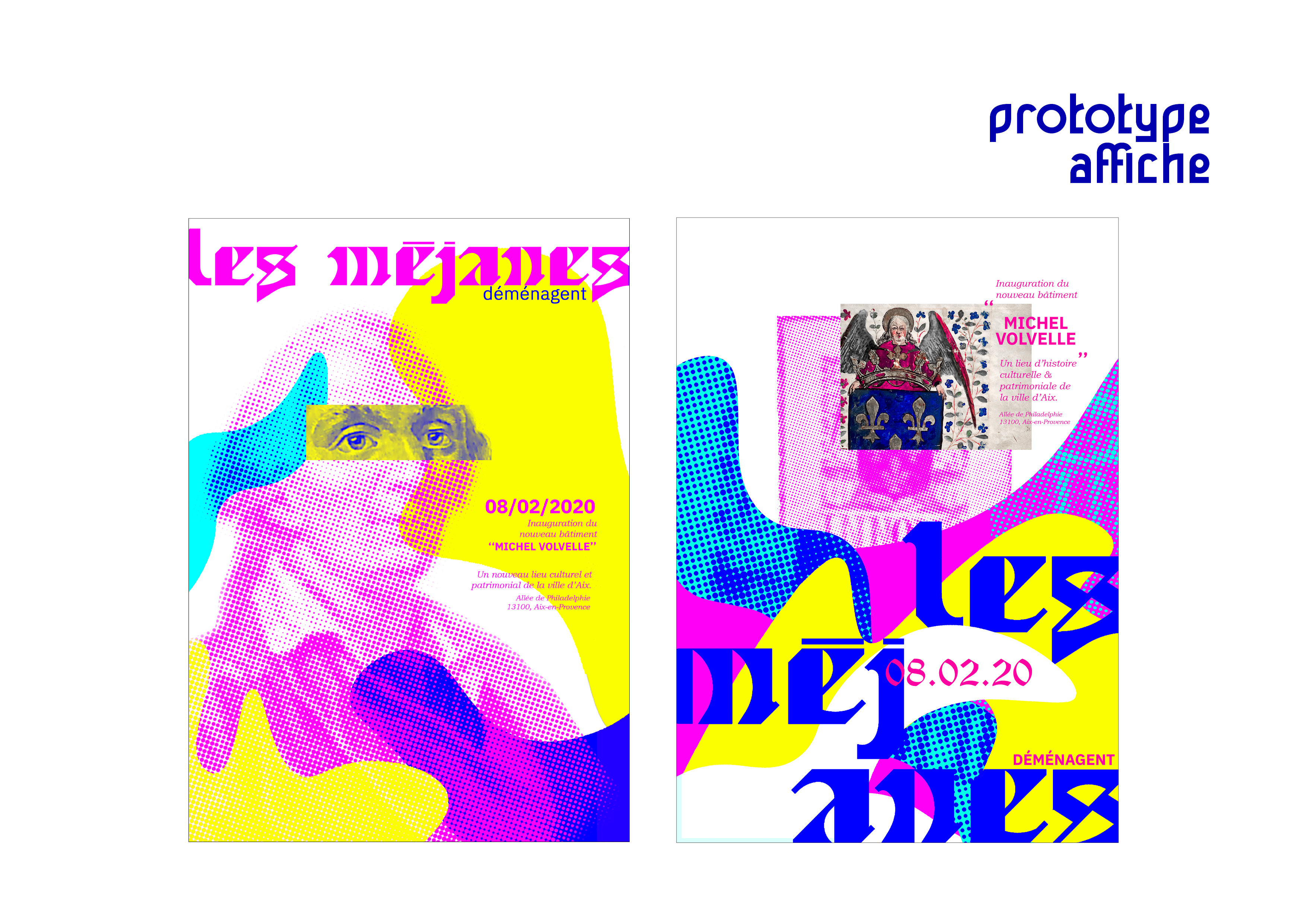 proposition d'une signalétique pour l'inauguration du bâtiment Michel Volvelle à Aix-en-Provence.