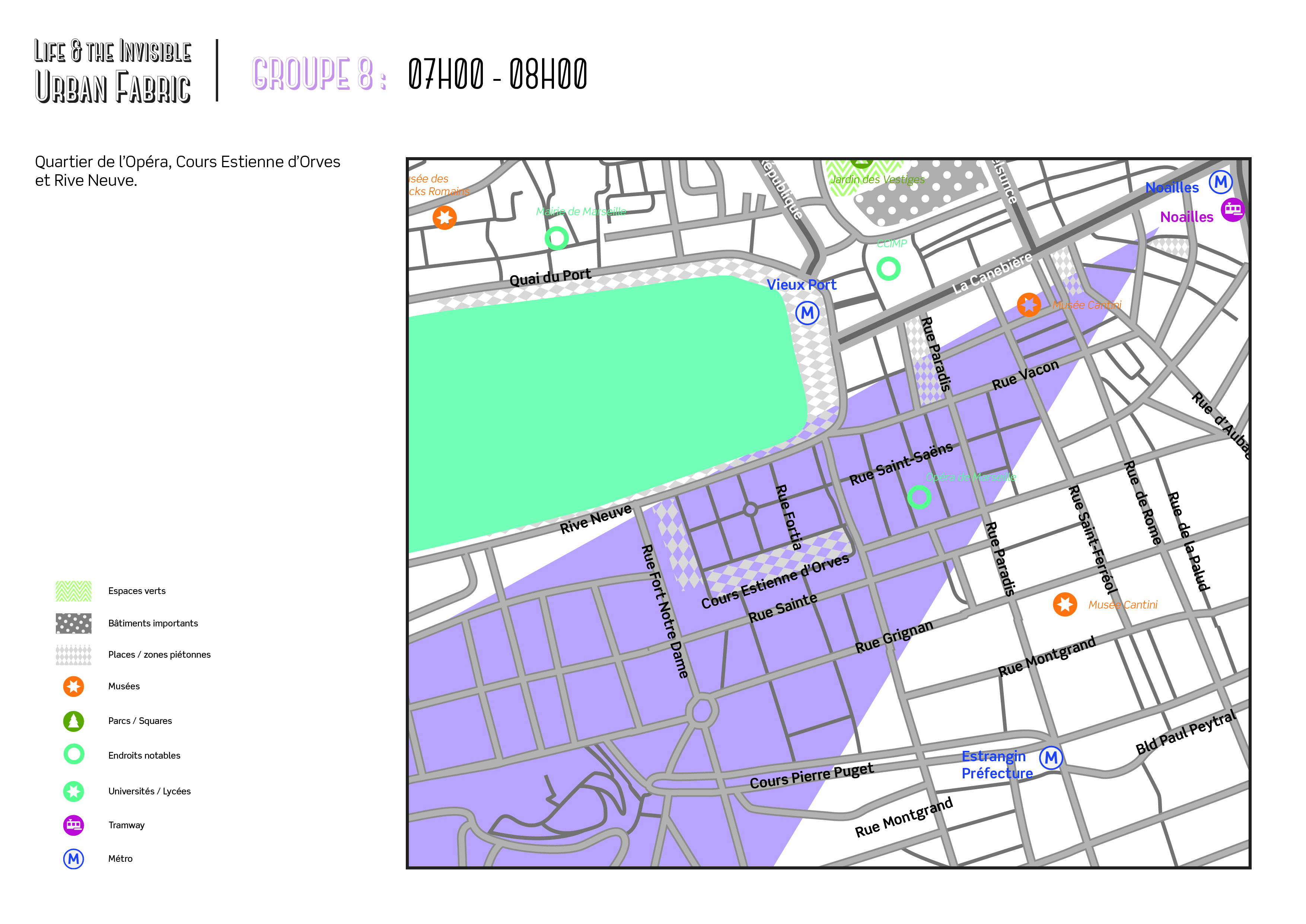 Nous avons débuté notre “smellwalk” dans le quartier de Noailles, traversé le centre ville pour ensuite arriver près du port. Nous nous étions fixé comme objectif d'associer une texture aux odeurs senties, non aux objets des quels elles émanaient, par exemple, à l'odeur du gaz s'échappent des pots d'échappement des voitures nous associons une texture douce, chaude mais étouffante telle que le coton. Au long de notre parcours nous avons prélevé différents échantillons plus ou moins odorant, évceuant ce que nous avons senties.