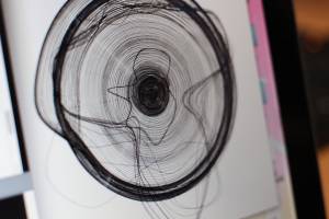 Nous avons choisi d'intégrer un capteur de pression à notre production pour appuyer notre discours. Il permet de contrôler le diamètre de notre forme. C'est-à-dire que plus l'utilisateur appuie sur le capteur, plus le diamètre de la forme augmente. Par ce procédé, l'individu est confronté au geste automatisé et répétitif tandis que la machine est maîtrisé par ce dernier. La relation homme-machine devient étroitement liée.