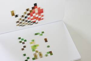J'ai créé les images du conte en pixels. Cette technique permet de montrer l'horreur attachée à certaines scènes de dévoration ou d'éventrement, tout en les masquant. Les illustrations sont comme les scènes floutées que l'on retrouve à la télévision pour protéger certains téléspectateurs. L'idée ici est de trouver un juste milieu entre ce qu'il faut montrer et ce qu'il est nécessaire de cacher. A quel moment créer des manques, des blancs, des ellipses afin que l'enfant comble ces manques grâce à son imagination?