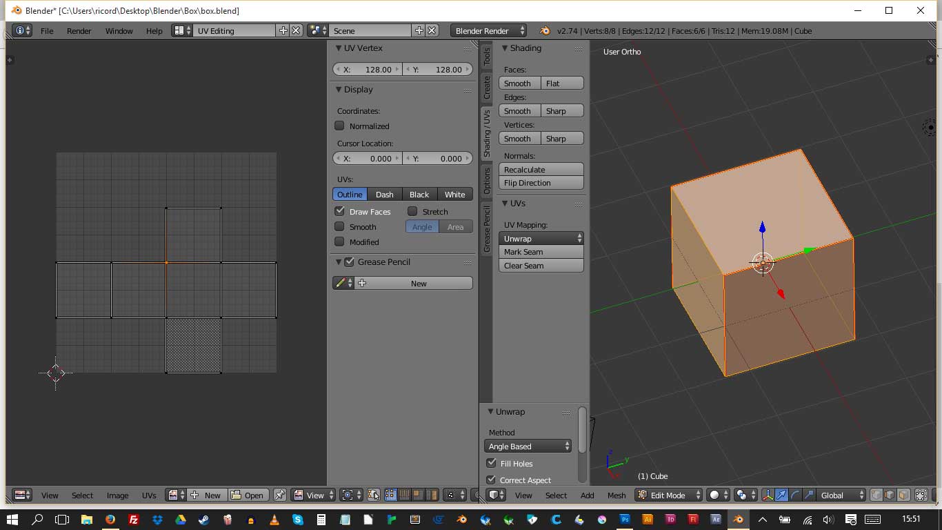 Une fois la carte UV (UV map) dépliée, il s'agit d'envelopper le cube.