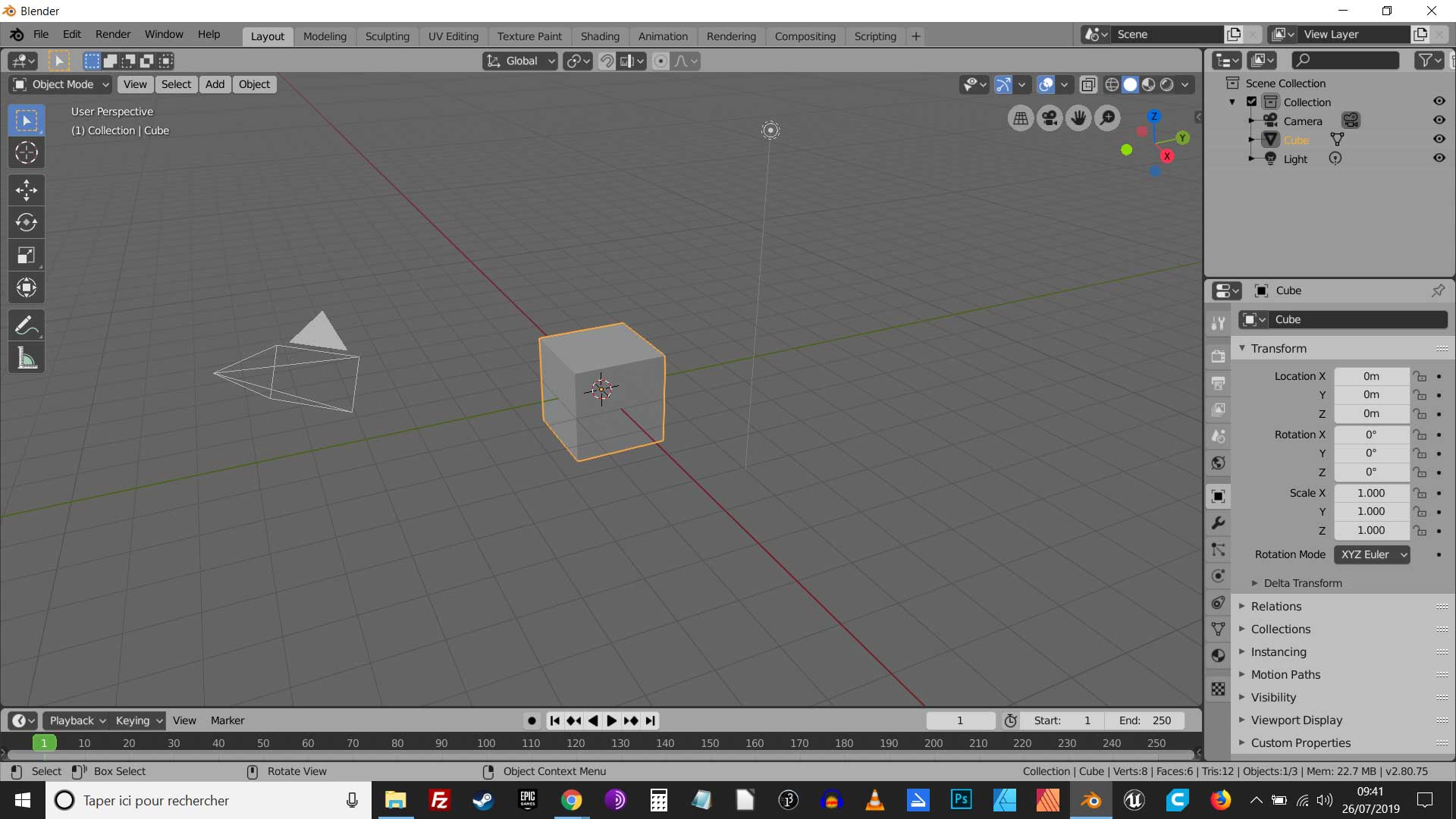 L'interface de Blender est dense, ne vous laissez pas impressioner! Il est vivement conseillé de conserver le logiciel en anglais, les ressources disponibles étant essentiellement en anglais.