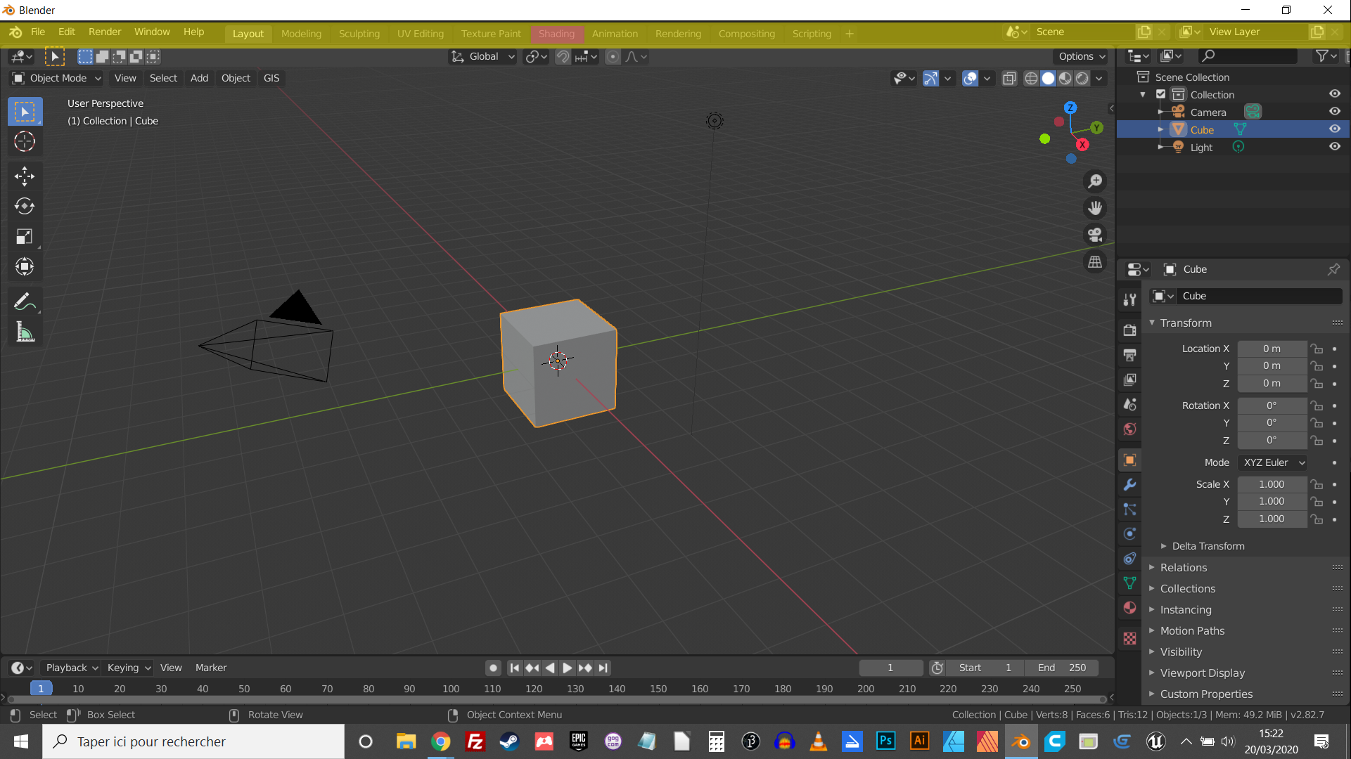 Démarrer le logiciel, conserver la vue par défaut “cube”