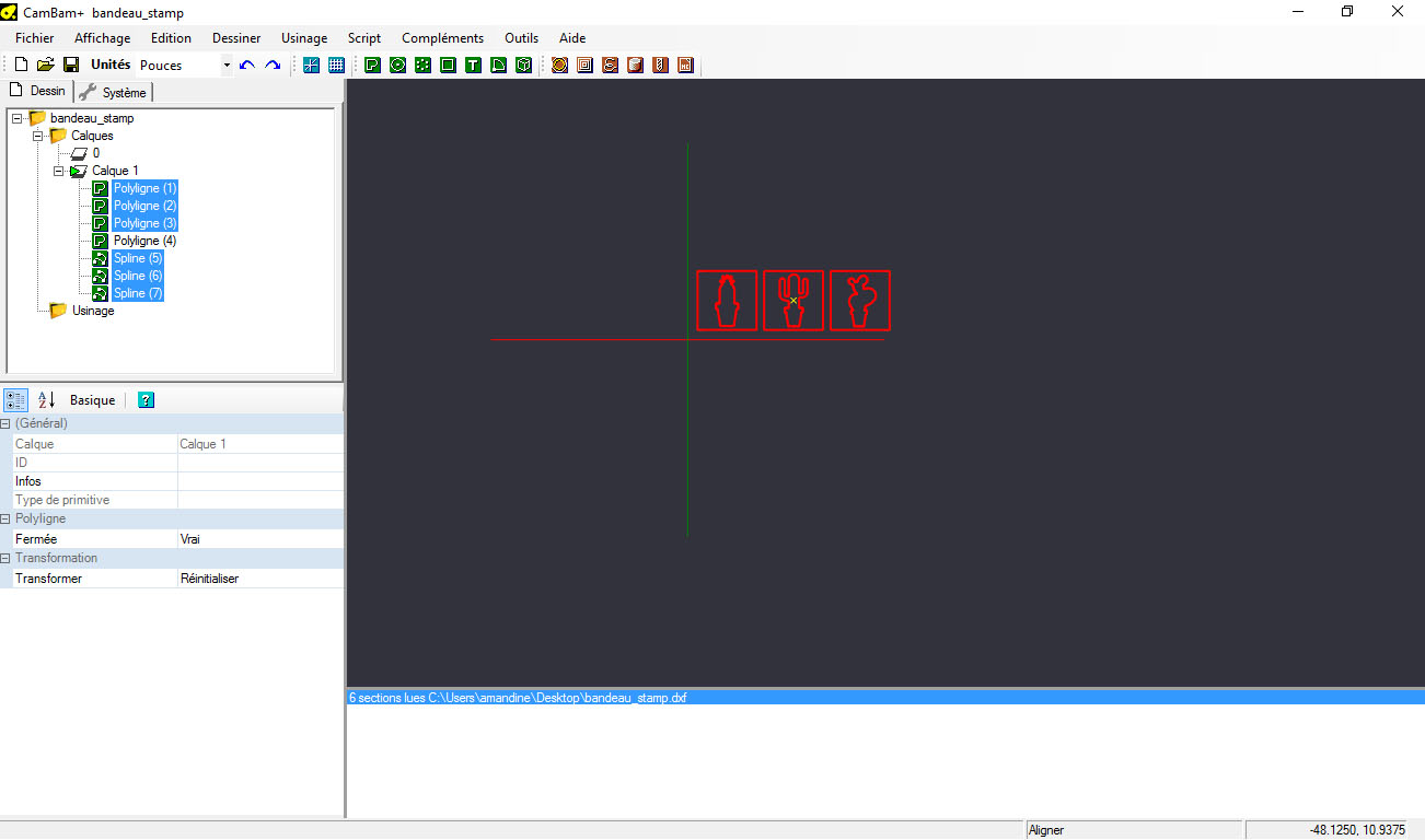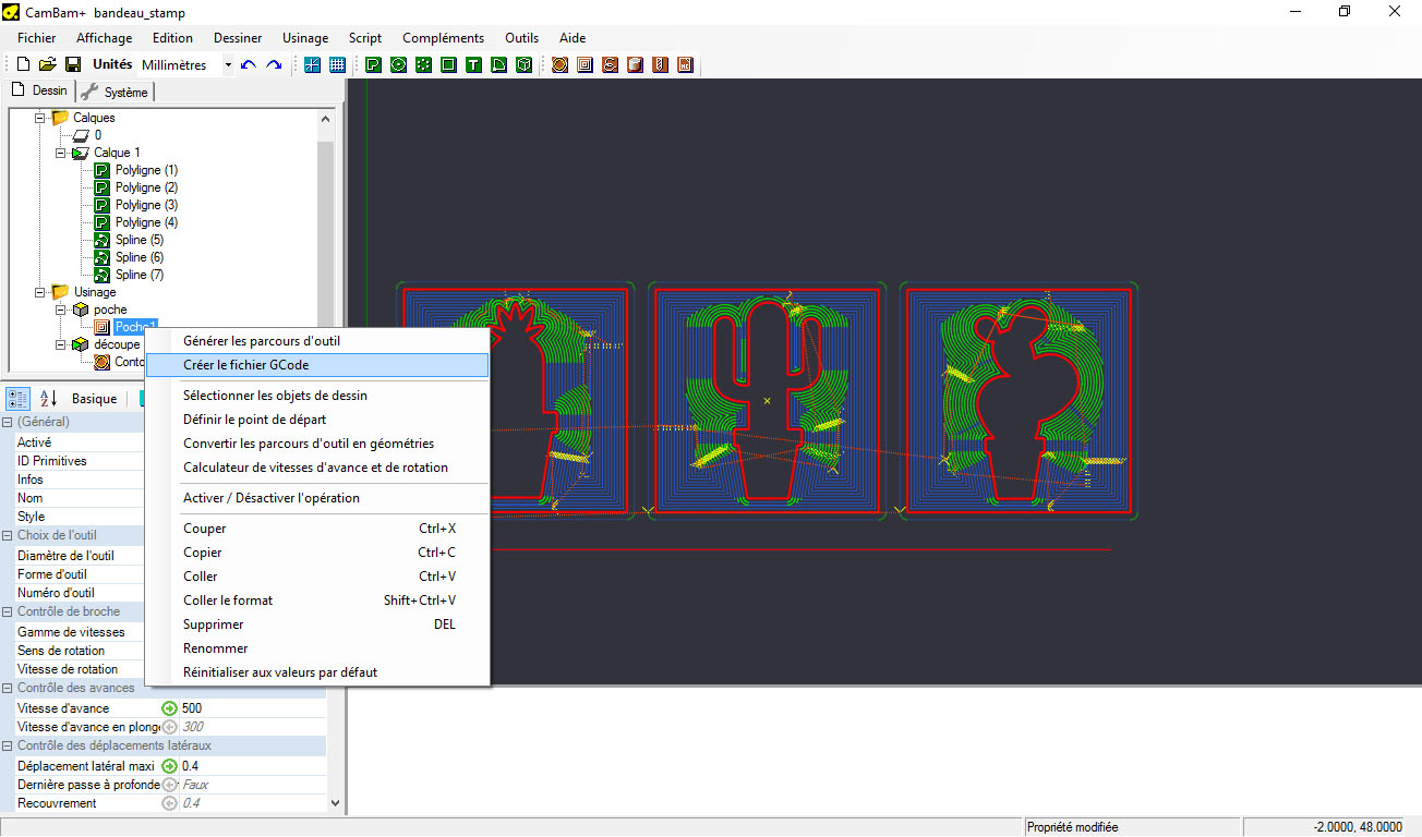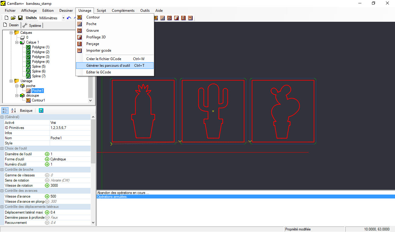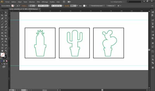 sélectionner avec la touche CTRL / ou CMD Les tracés / formes fermées pour le 1er usinage ( la poche ) ( ici ce sont les cactus )