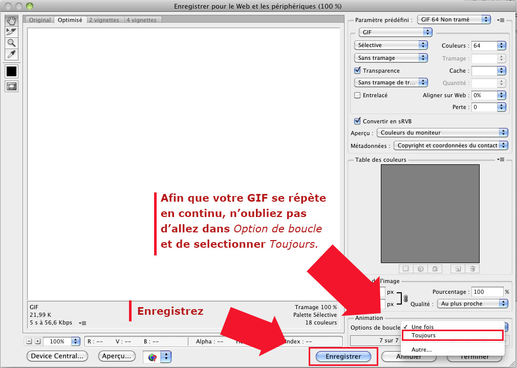 Le format GIF permet de stocker plusieurs images dans un fichier. Ceci permet de créer des diaporamas, voire des animations si les images sont affichées à un rythme suffisamment soutenu. Chaque image d'une animation peut avoir sa propre palette. (source Wikipedia : https://fr.wikipedia.org/wiki/Graphics_Interchange_Format )