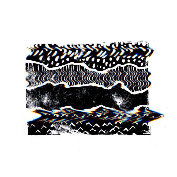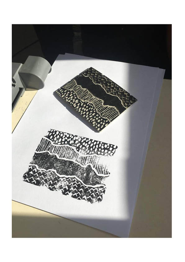 Résultat : ce qui a été évidé sur le lino ressort blanc, on peut s'amuser à faire quelques effets.