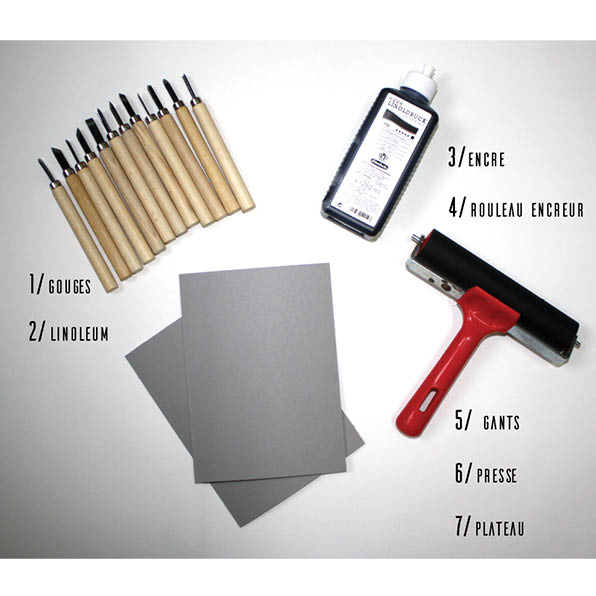 1/ Les gouges permettent d'extruder le lino. Il existe différentes formes (U et V) et tailles.