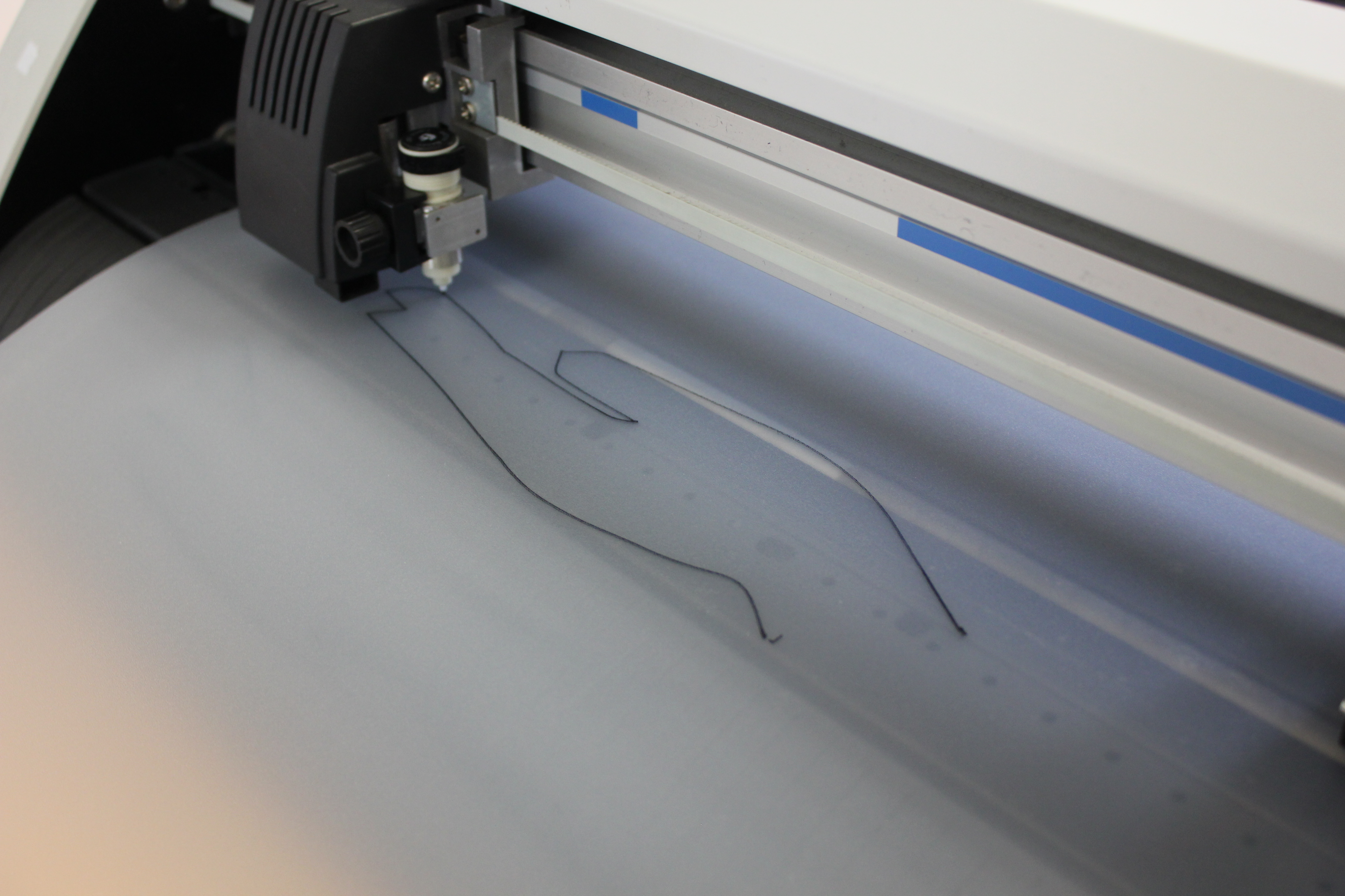 Nous avons tout d'abord fait des tests des dessins, en échangeant la lame par un feutre. Il s'agit de vérifier si le plotter a bien pris en compte le format, tout les traits du dessins et qu'il dessine à l'endroit que nous souhaitons.