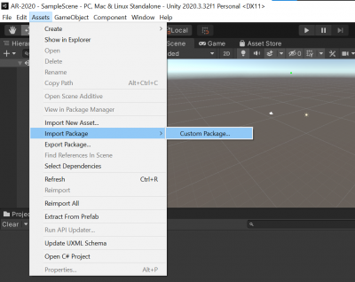 Importer le package depuis Unity’s menu Assets → Import package → Custom Package.