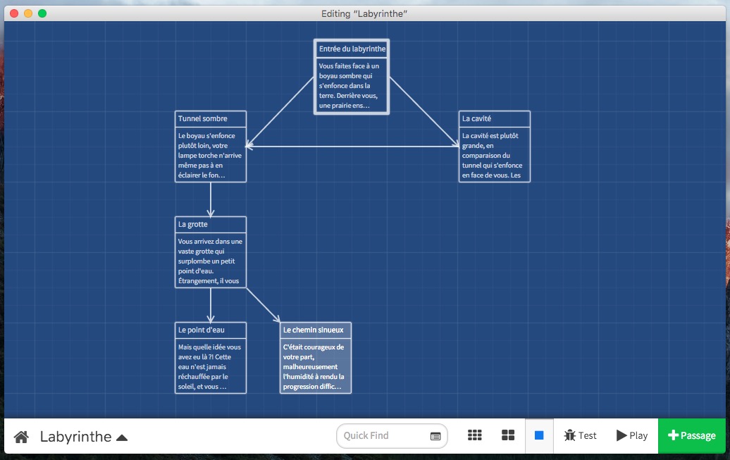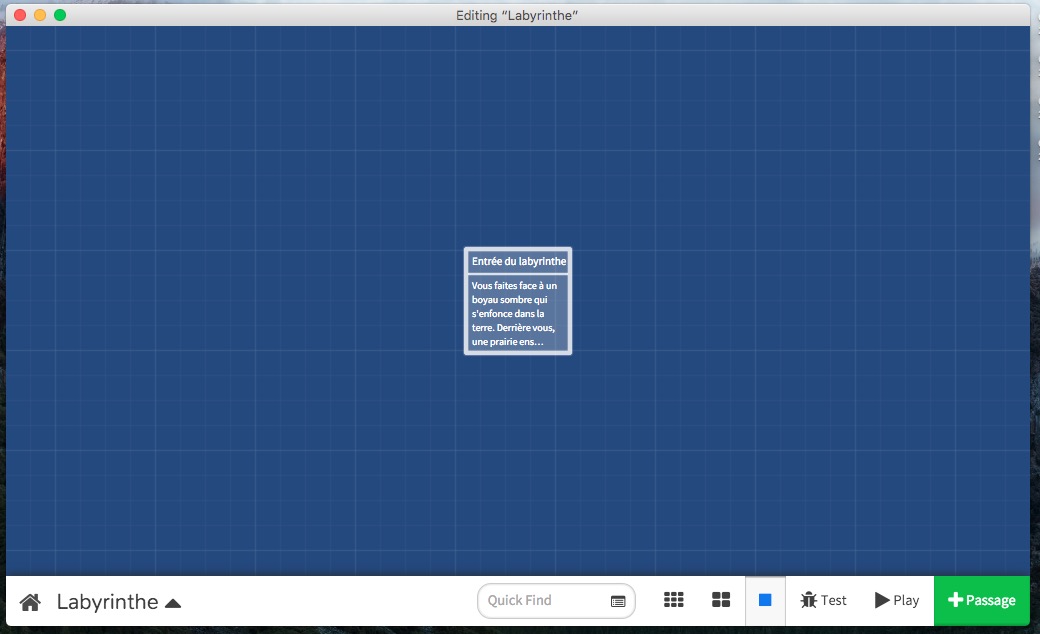Vous pouvez, avant d'exporter votre aventure, tester directement votre jeu grâce à l'icône “Play”.