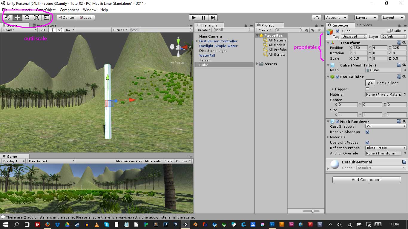 3. Positionnez les objets 3D avec l'outil Scale ou dans l'Inspector