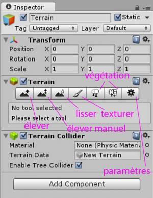 Sélectionez le terrain, cliquez sur l'icône texture.
