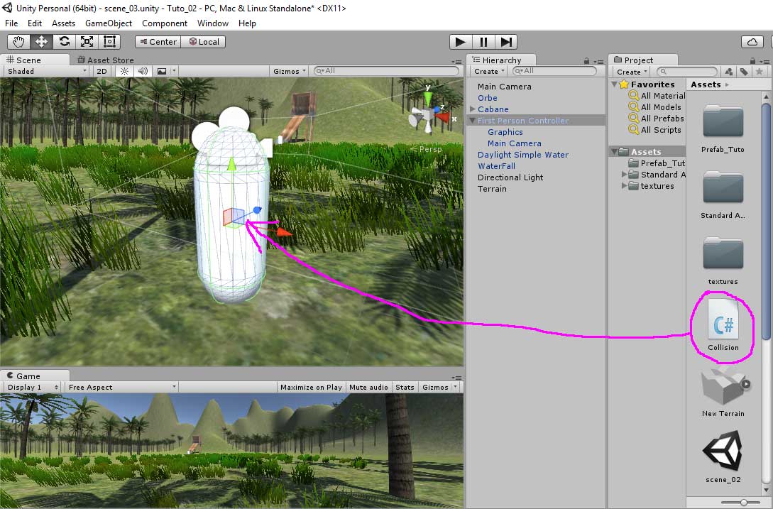 Créez un script “Collision” afin de coder le comportement de votre objet.